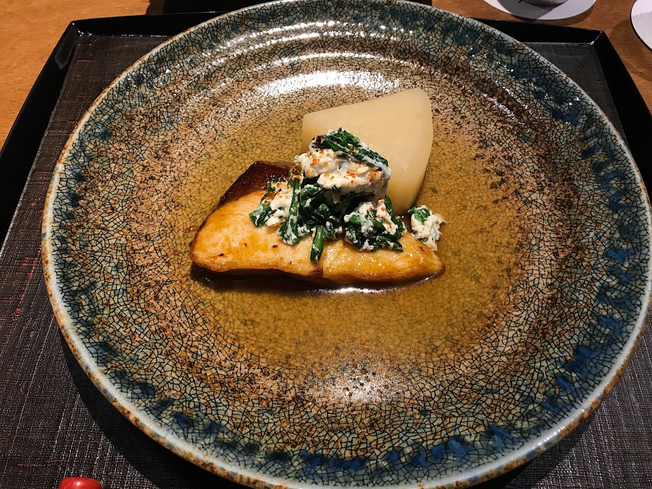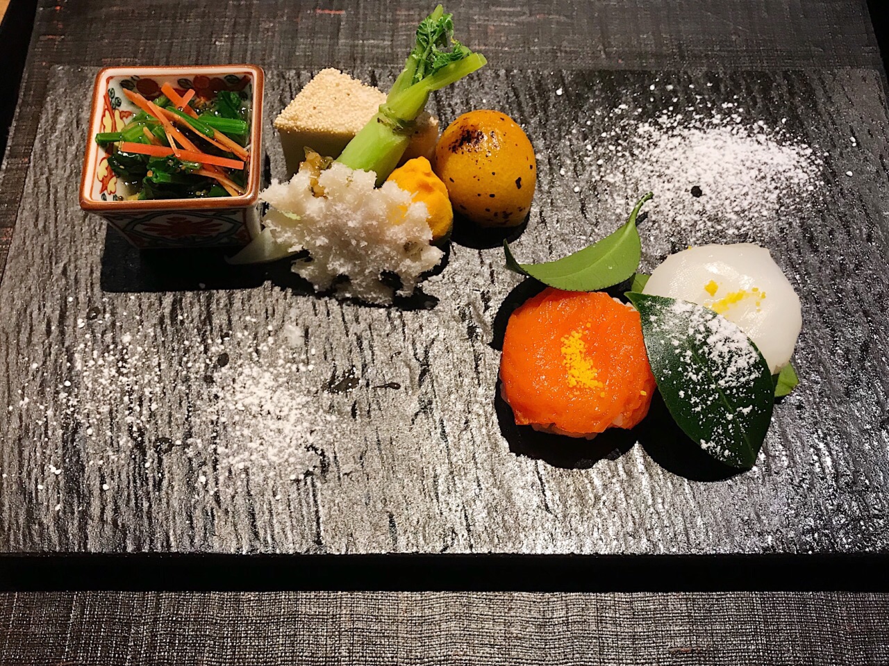 {祇園 さゝ木} ❥京都 祇園 有美食家用「温故知新」来形容{祇園 さゝ木},说的是它对传统京料理恭敬地延续,以及它对崭新创意竭力地发扬。还有食客用「佐々木剧场」来形容{祇園 さゝ木}的美食盛宴,这充满冲击的视觉享受,总是那么突如其来,无法预测。 从先付开始拉开序幕,这应该是一副「雪中山茶」的画卷。白色与橘红色的山茶花分别用乌贼和鲑鱼制作的,很形象很可爱,味道也没有因为保持色相而作牺牲。莲藕雪花❄,铺满芝麻的芝麻豆腐,还有南瓜芝士奶油混着抹茶奶油做成的小团子。觉得这是舌尖上的美食,又想说这是眼瞳上的美景。 烤物之后“口直し”(清洁味觉),淋了地瓜沙司的牛蒡的冰激凌。这种匪夷所思的搭配,如果只是听了口头介绍未免觉得有点“丧心病狂”,但是佐々木就是能让味道的相性变得如此契合,牛蒡那种憨实的小苦涩融进了地瓜淳朴的小腻甜,不得不说,那种惊艳就好比是——你没看好的那一对,竟然结婚了,还过得无比好! 所以,{祇園 さゝ木}被我划到了每个季必去吃一次的餐厅,因为你对他的肯定和期待值得更多的探访,以及那颗「我看“你们”到底能够过得有多好」的八卦心。