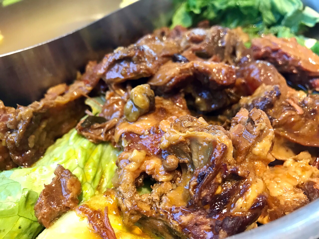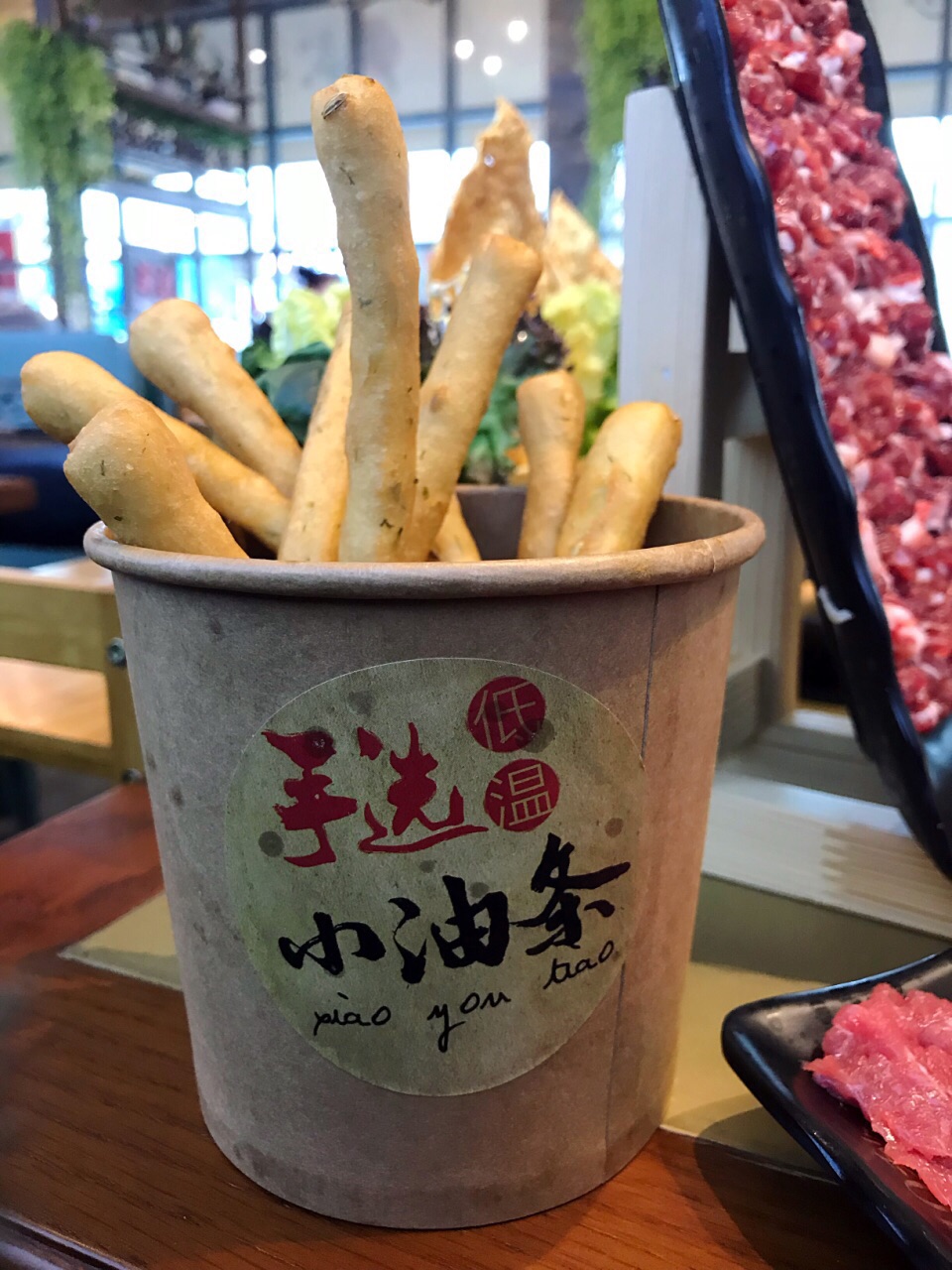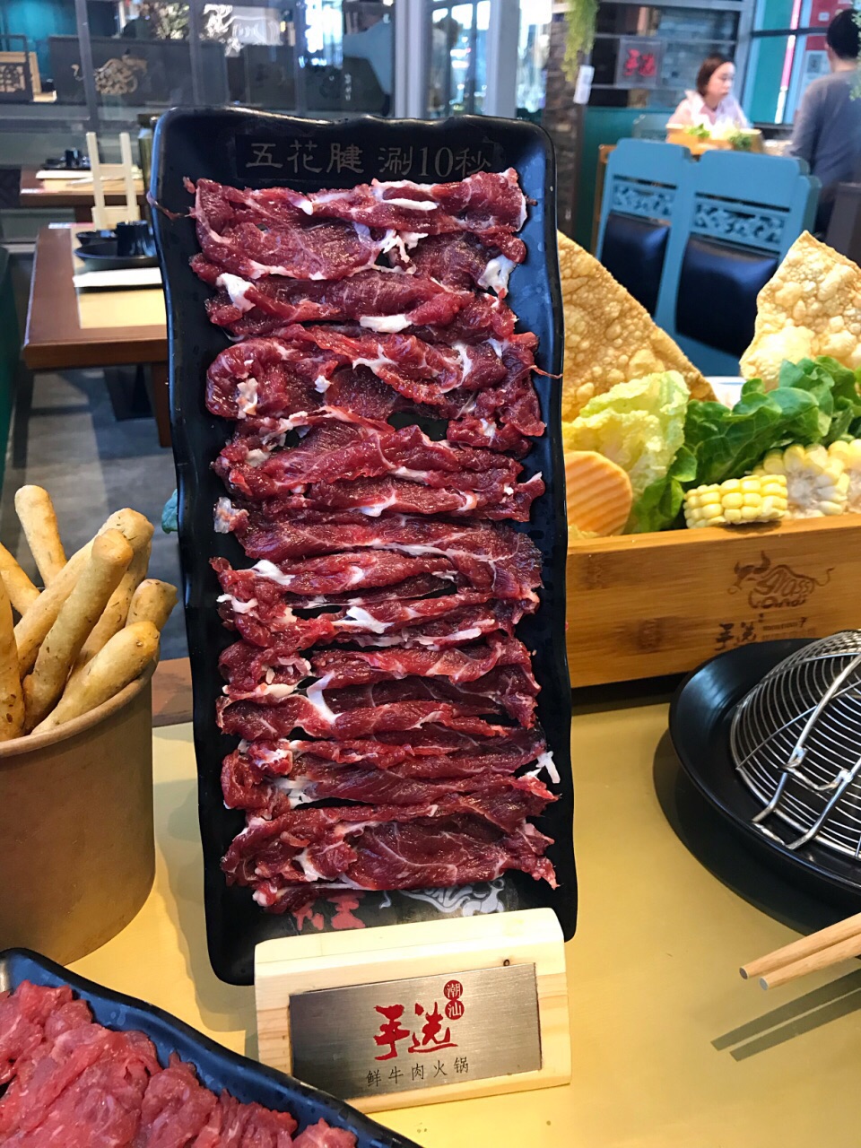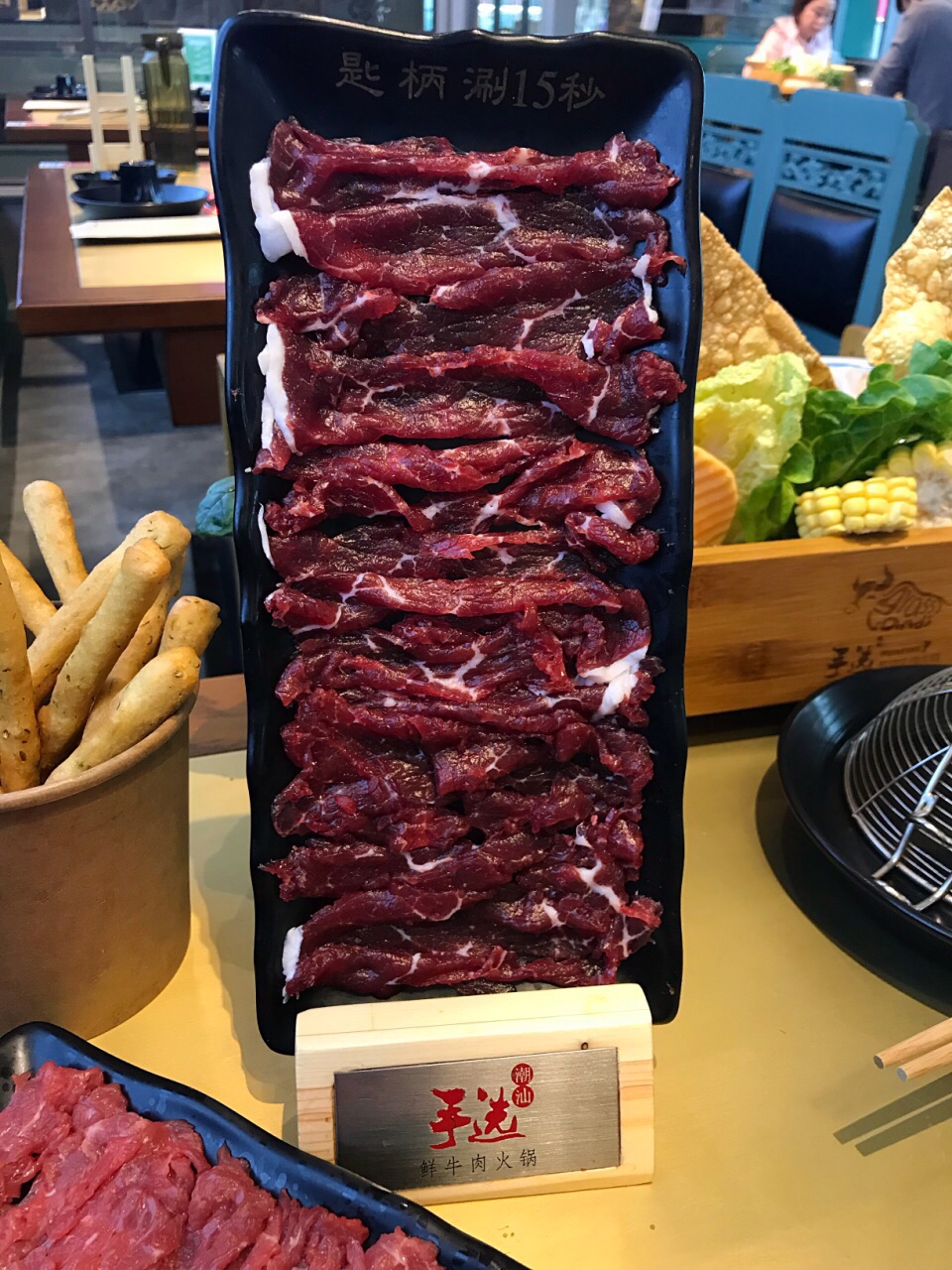 在柏威年店吃出了感情,来这里再续前缘 ✨特意选了上次错过的招牌的牛腩鸳鸯锅,一半清汤一半秘制牛腩,都是大块大块的软烂香浓的牛腩肉真过瘾啊,我觉得这牛腩是他家区别于其它的特色!推荐点这个锅底! ✨点给老妈的芋泥老妈给了好评!饮品点酸梅汤吧,那个什么雪梨茉莉,马蹄神马的味道极其一般不点也罢,牛肉干是5分干的那种,再油炸一下,大概要等10几分钟。 ✨机场万达店的面积比柏威年店小很多,服务跟柏威年一样特别赞!有高大上的儿童餐椅