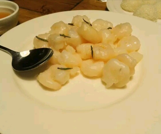 环境高端大气上档次,几个朋友点了几个菜。 蒜香排骨 不辣 蒜味的 好吃 龙井虾仁 虾仁上面 撒了零星几个茶叶 (龙井) 水煮牛柳 麻麻的 后味十足 吃了一口 嫩嫩的 非常好吃 入口即化 海鲜炒粉丝 可以说是让我最惊艳的一道菜了 我感觉一个人吃了半盘 榴莲糯米糍 一骨碌咽下去 啥味也没尝着 但是这个甜品