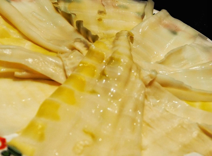 老门框家的手切羊肉薄厚均匀,肉不会太碎,也不会内外肉质有偏差。肉质细且无膻味。用筷子夹起来羊肉,放入铜锅中,变色即捞,蘸料入口,入口即化,鲜嫩无比。 豆制品拼盘是每次吃火锅必点。老门框的拼盘包括:炸腐竹、油豆皮、冻豆腐、白豆腐和宽粉。每一种的分量都不少。白豆腐软嫩、宽粉弹牙、油豆皮咸香、冻豆腐q弹、炸腐竹香酥。 特别提出来他家的炸腐竹真的很好吃!有浓郁的豆香味,色泽黄白,油光透亮,吃起来又软又香。 无意间再哪里看到过介绍方竹笋,就一直想尝尝。这次在菜单里看到了,就点了一份。方竹笋质嫩肉厚,色美味鲜,和其他笋类相比,更有它独特的香味。 吃涮肉,蔬菜也不能少。菌类里选择了最常吃的平菇,质地肥厚,嫩滑可口。土豆是我爱的脆脆的口感,涮到半透明,入口即化。生菜作为唯一的青菜,清香爽口,还能解下大餐后的油腻。 老门框的烧饼一直做的不错。有芝麻烧饼和炸烧饼。怕太油腻,就选择了普通的。他家的烧饼味道比较淡,配菜吃才行。单独吃没啥香气。