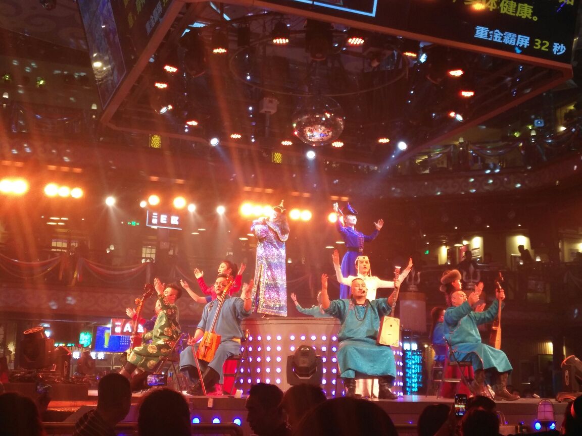 非常有特色的一家餐厅,大厅中央是舞台,7点以后有各种蒙古族特色的演出,可以花100元请演员敬酒...非常有特色的一家餐厅,大厅中央是舞台,7点以后有各种蒙古族特色的演出,可以花100元请演员敬酒,烤全羊、三文鱼、羊肉串、酸奶都非常棒!是聚会放松的好去处!