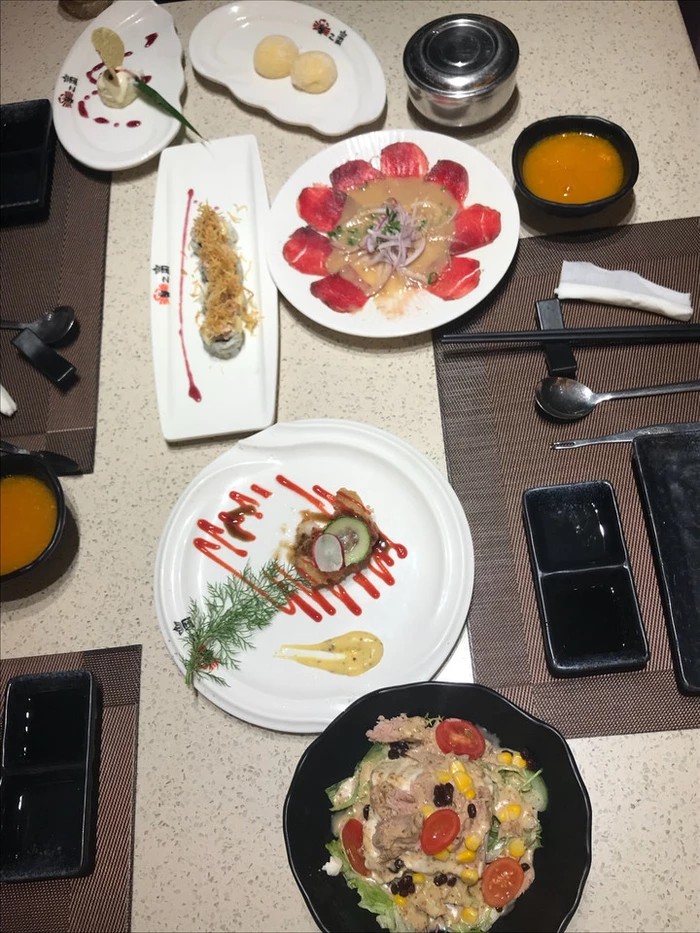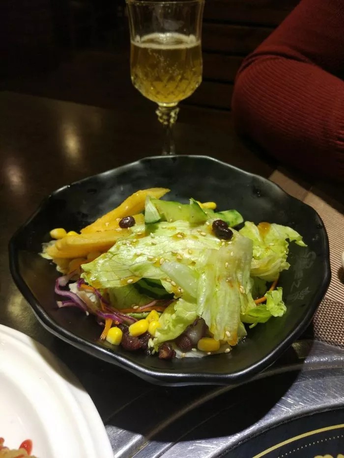 炒的很入味,螃蟹特别鲜,肉质很好,特别好吃,既炒出了辣味又保留了螃蟹的鲜味,而且里面还配有黄瓜、年糕,年糕辣辣的也很好吃~ 和风熏牛肉:味道不错,搭配酱汁很棒 蔬菜沙拉:里面一大块绢豆腐,配上芝麻酱汁很好