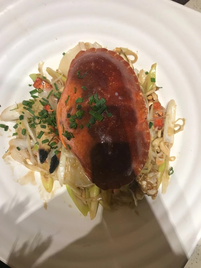 螃蟹特别鲜,肉质很好,特别好吃,既炒出了辣味又保留了螃蟹的鲜味,而且里面还配有黄瓜、年糕,年糕...