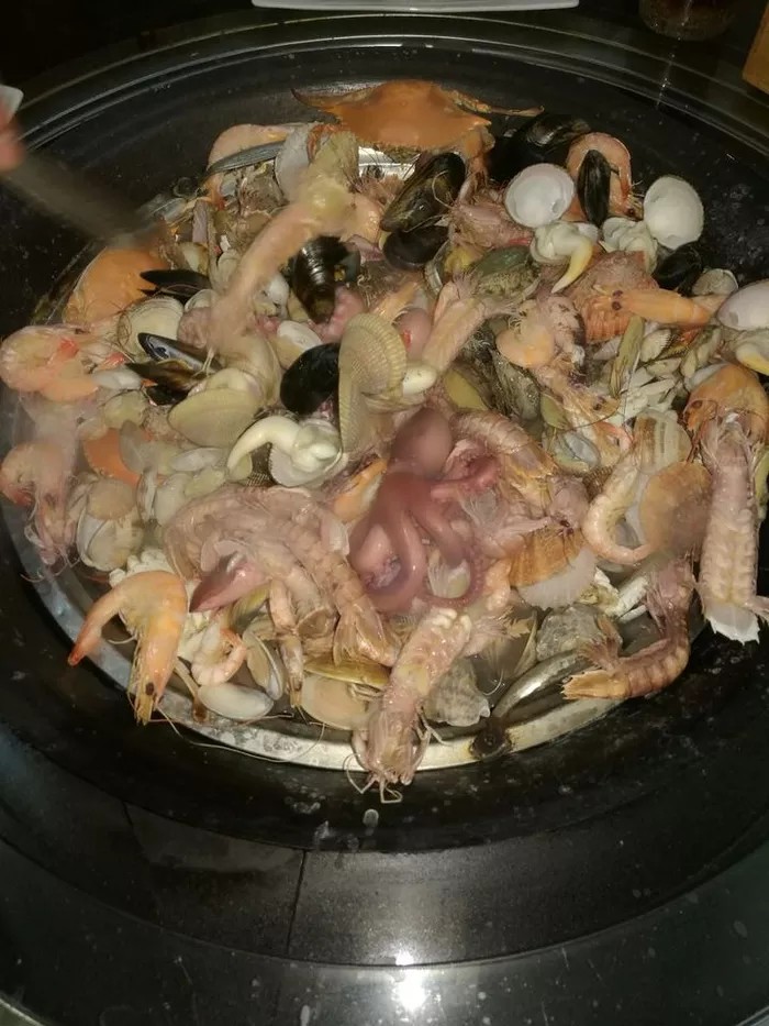 醉蟹钳甜甜的,钉螺汤汁浓郁,一只大蟹基本就八分饱了!还有好多好吃的:蛤蜊、蛏子、青口贝、鸟贝、扇贝、八袋、笔管鱼、鲍鱼、基围虾、蜊虾、皮皮虾、海螺!下面还有杂鱼豆腐汤,鲜甜!豆腐和白菜超级入味!逛鱼很鲜嫩!还尝了青岛特产:即墨老酒!加了冰糖和生姜,甜甜的暖胃好喝!
