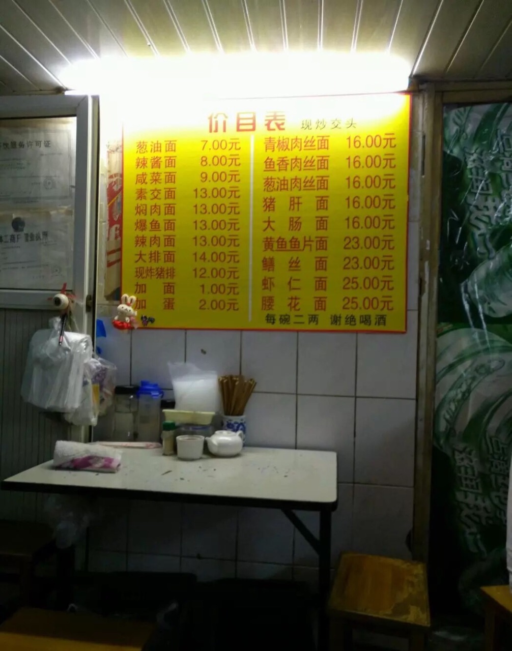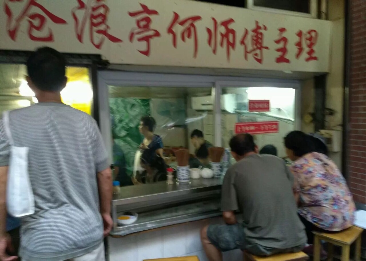 网友2017-12-31下班了不高兴回家做饭,来一碗面+炸猪排真是爽歪歪,我吃了鳝丝拌面,老婆吃的黄鱼鱼片面下班了不高兴回家做饭,来一碗面+炸猪排真是爽歪歪,我吃了鳝丝拌面,老婆吃的黄鱼鱼片面。黄陂路靠近合肥路这里的何师傅原沧浪亭面馆一直人气十足,特别是中午,收钱的老阿姨像是面店的一枝花,厨房和收钱连在一起。