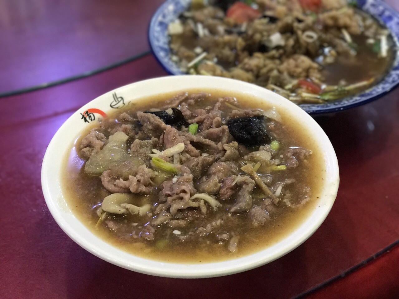 洛阳行美食回顾之【杨氏食楼】: 当地朋友给推荐的一家老牌餐厅,位于瀍河回族区,招牌菜是洛阳水席中的一道名菜——连汤肉片。 #连汤肉片# 必点菜,29元的小份已经是满满一碗牛肉片,配菜有口蘑、韭黄、木耳、青豆等等。牛肉片裹有淀粉,入口爽滑,汤汁因为勾芡变得粘稠,微酸的口感让人瞬间食指大动。四星半! #小酥肉# 只有大份售卖,39元满满一盆!配菜和汤汁与连汤肉片类似,碗里先炸后炖的酥肉吃着有两种,一种是熟牛肉裹糊的肉块,另一种小一些,却味道更佳,像是生肉裹糊后再加工。反正嘴里满满的都是肉。四星 这俩菜在我小时候过年过节时也常吃,山东与河南的饮食还是很相像的 米饭蒸的比较差!建议去吃饭选择其他主食。 【环境、服务、停车】 老式承接婚宴的那种格局,吃饭全是大圆桌。不管你几个人,自己找地方坐就好。服务当然难说周到,我去的时候过了饭点,倒是还行。吃完自己去吧台结账。 洛阳物价低,给起肉来真舍得啊!到洛阳玩比较推荐大家去尝试的一家馆子~