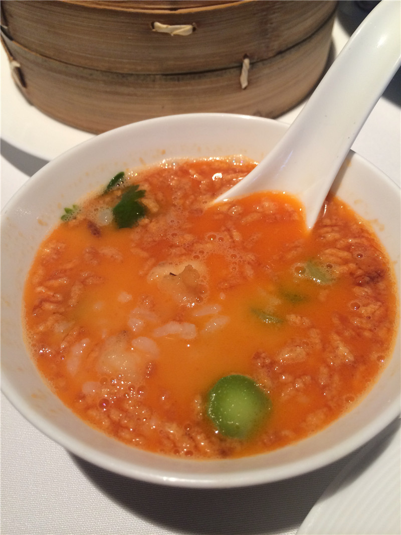 新荣记这家也算是收藏了好久好久了,一直都觉得可有可无,所以一拖再拖。 没想到某老人家倒是一直惦记着这家,终于在国庆成行了。 国庆第一天聚餐,还真有种家庭聚会的感觉~ 提前一周定位,留了个大厅的圆桌给我们,大厅比较昏暗,环境比较低调。 环境感觉是靠窗那几桌视野会比较好,有大大滴落地窗~ 服务还行,主动添茶倒水,就是缺少了点笑容。 小伙伴本想来吃点心,被阿拉枪毙了。 哈哈,人家做的是台州菜,点心不出彩的好么~ 菜价总体是偏高的,怕吃不饱,还是点了点心。 【干煎带鱼】146米 带鱼出品阿拉还是有点失望的,煎的不错,但是选料不大好。 对于这个价格来说鱼肉还是干瘪了些... 带鱼金黄酥脆,真的是外酥里嫩,只不过味道偏咸了点。 【鲳鱼家常烧】498米/斤 嘴馋点了野生鲳鱼,还被小伙伴吐槽,一条鱼这么贵。 实际上还好,鲳鱼一条基本在7、8两左右,店家附送手打年糕,一般也就300+一份。 鲳鱼原汁原味,超级鲜美,肉肉很细腻,好吃哒~ 送的手打年糕也不错,搭配汤汁赞赞哒。 【龙虾汤泡饭】128米 特地点了做主食填饱肚子的。 泡饭还不错,色面看着就很浓郁,里面龙虾肉肉真材实料看得见~ 【香滑流沙包】22米/3只 流沙包阿拉觉得不灵,虽然有爆浆的感觉,但是流沙只有甜味,没有咸蛋黄沙沙的咸味。 点心还点了虾饺皇、叉烧肠粉、萝卜糕、烧麦皇和凤爪,感觉都无功无过,味道不出彩。 午市茶位费6元/人,有菊花、龙井、普洱、铁观音可选。