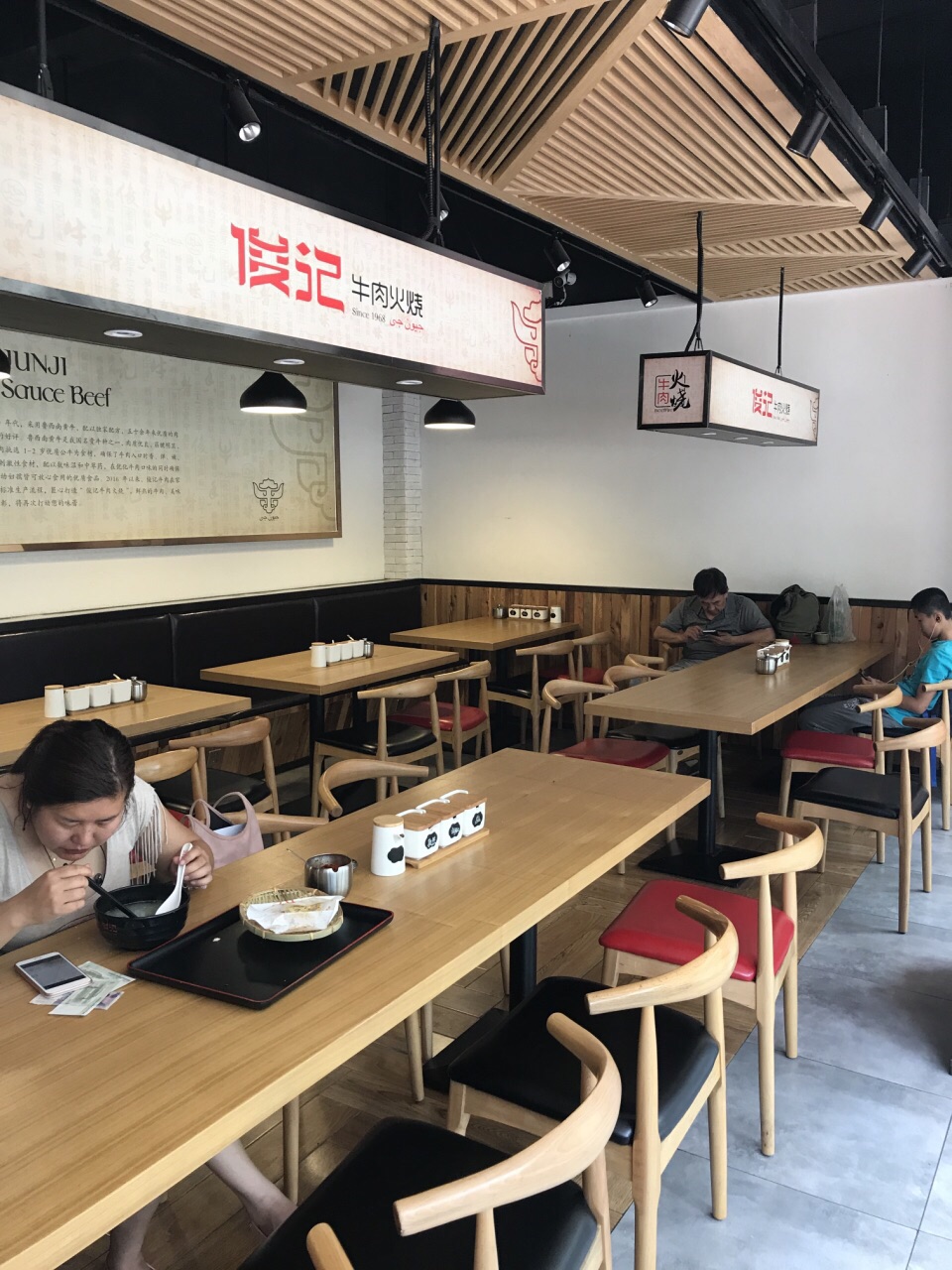 周末想吃牛肉烧饼却起晚了,想起朋友提起俊记牛肉开了堂食店,驱车前往。新店其实就是跟老店连接的一座房子,用来做快餐堂食,环境还不错。 除原来老店的各种牛肉制品外,新增主打菜品牛肉烧饼和牛肉汤,再就是几个简单小菜。点了豪华牛肉烧饼13元/个(普通的9元),牛肉品质较高,比回民小区里面大部分店都好,但烧饼不够酥脆,影响整体口感。三星半到四星~ PS:按斤卖牛肉制品的老店照旧经营,两边是分开的。