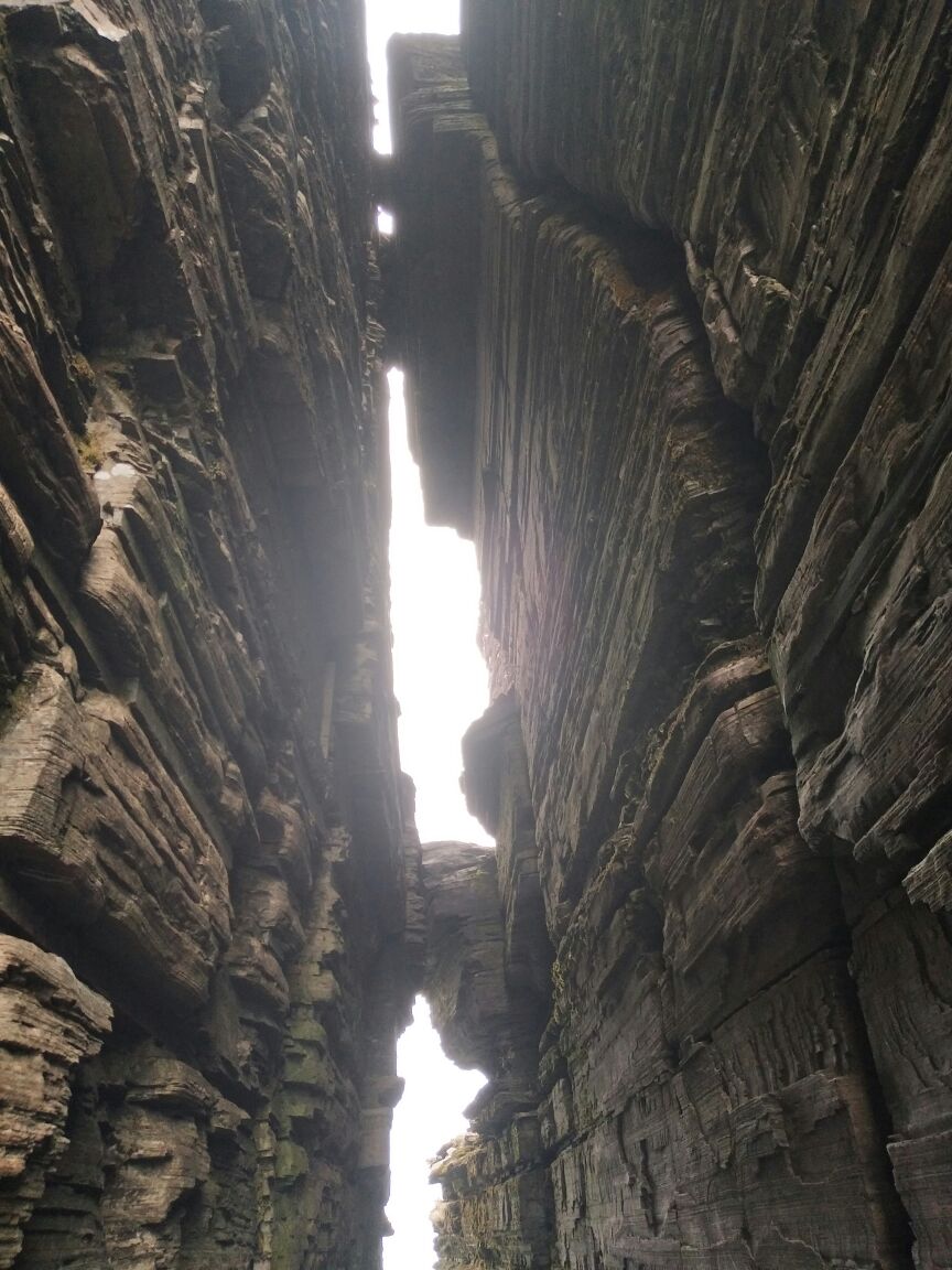 网友2018-01-02红云金顶上的“一线天”+又名“金刀峡”红云金顶上的“一线天”+又名“金刀峡”。 梵净山老金顶上也有一处“一线天”,但只有少数资料这么说,大部分资料都是说红云金顶上,快到平台处的位置,一块大石头,就像被人为地劈成了两半一样,所以又被称为”金刀峡“。