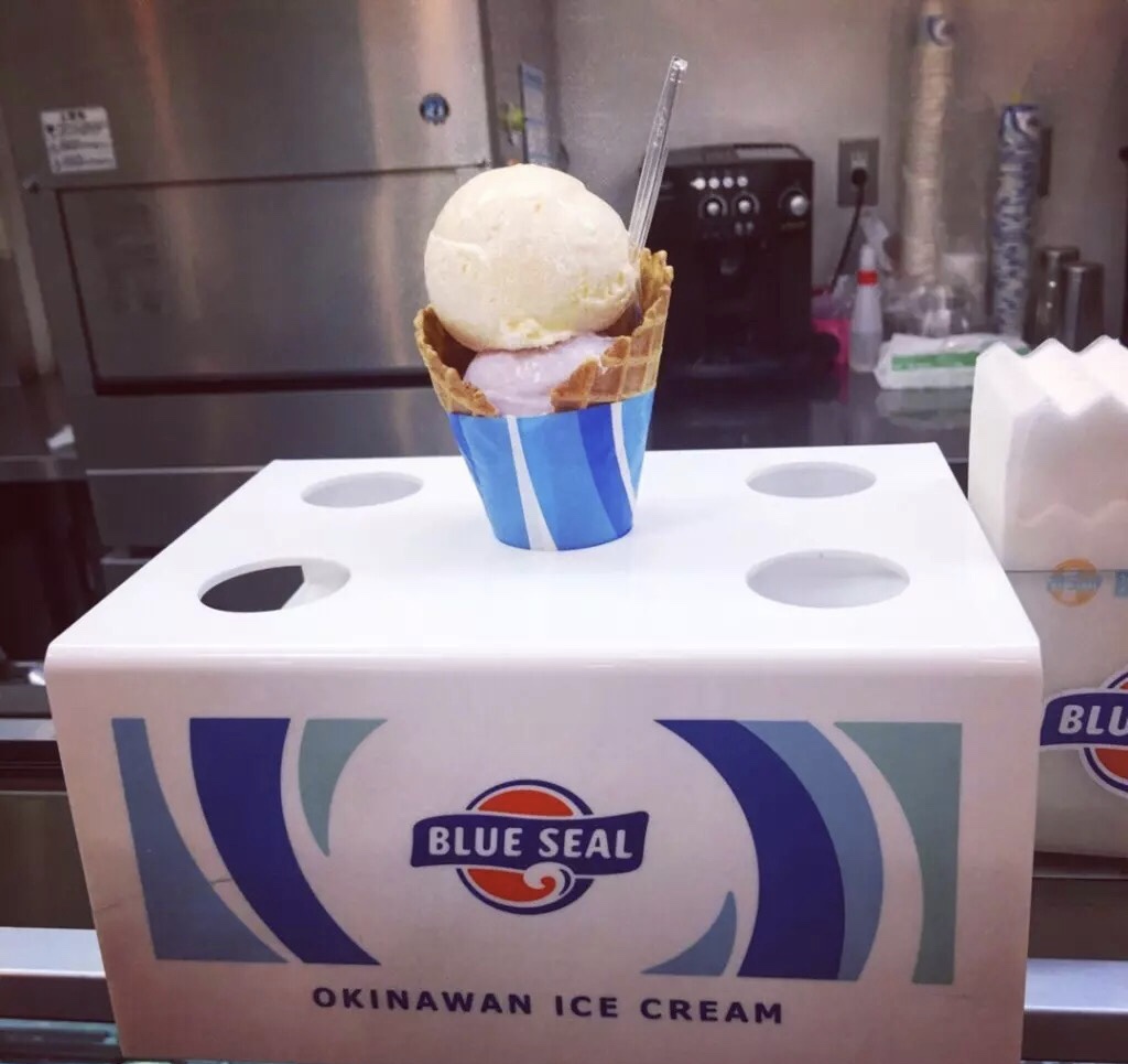 初到冲绳,第一次看到blueseal老激动的,后来发现这里的blueseal满大街都是,看到国际通就有两家的样子。在古宇利岛和石垣岛都吃过,在冲绳几乎每天都吃。口味很丰富,关键价格实惠极了。还有可丽饼,不过还是选择传统的冰淇淋啦。在国际通的店里为了避雨,休息了好久,环境不错的,要了香草和红芋口味的,来冲绳当然要吃特色味道咯~