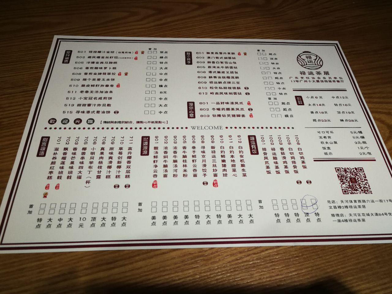 到广州自然少不了喝早茶吃点心,吃了几家热门的,换家试试,这个禄运茶居广州就两家店,到的时候又是饭点,拿号等位吧,店规模不大,座位间也是比较拥挤的,这里的价格相比其他几家店要实惠不少,不过貌似生意太好,点心都上错了,点的参汤虾饺皇居然上了普通的虾饺,吃着就感觉不对,和店员反映后立马又上了份参汤的,服务方面还是不错的。特色有机肠是必点的,这家的粥个人感觉比炳胜更合口味些。