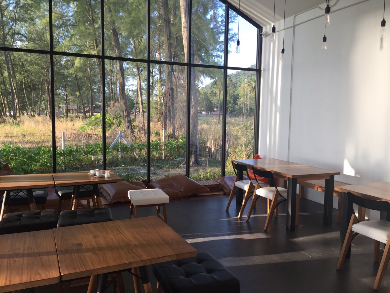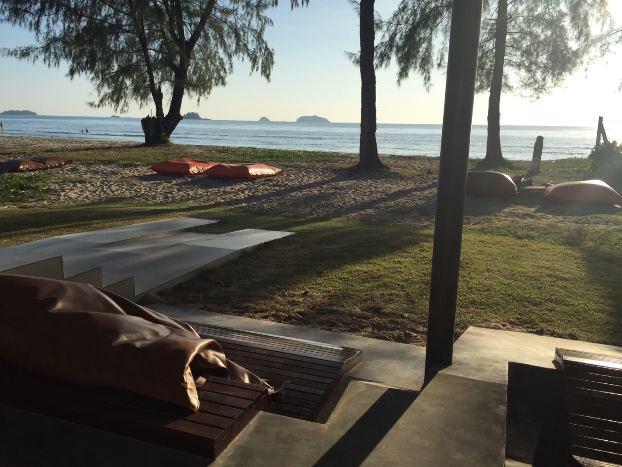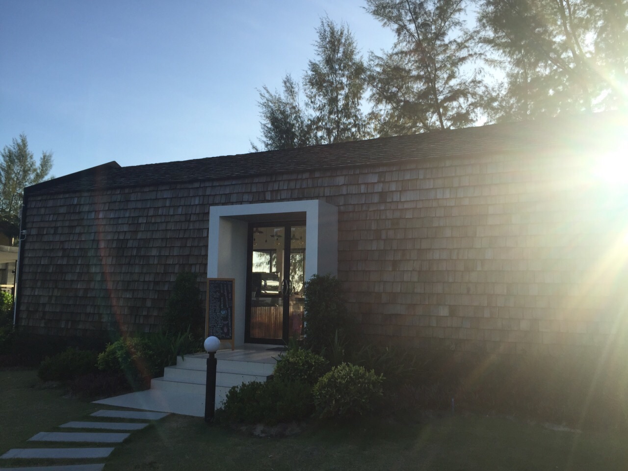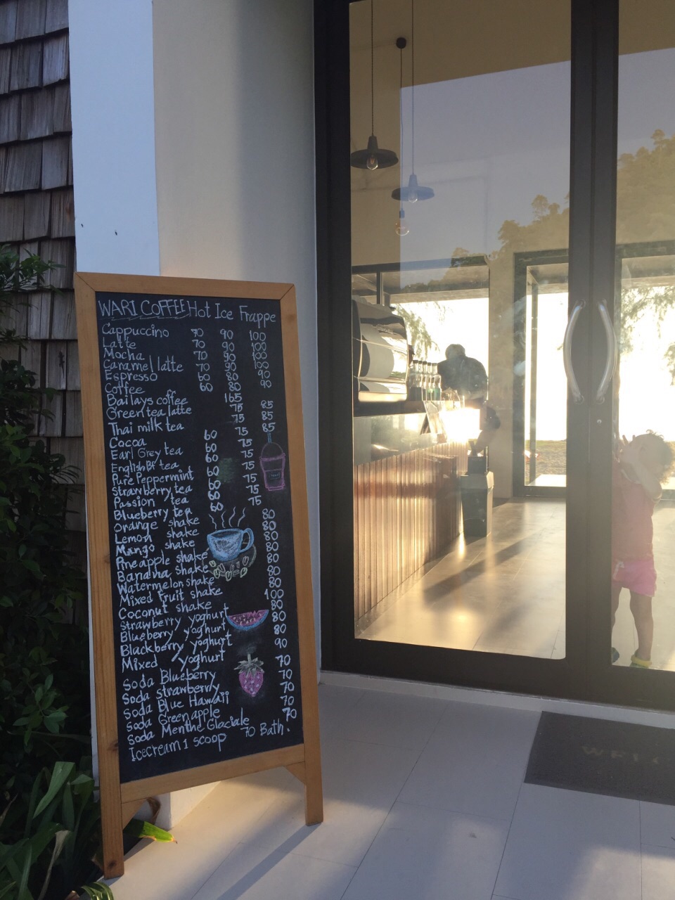 不大的店,就在海滩边上但是离道路很远。咖啡和蛋糕都很正,居然有蓝莓酱彩虹千层。(请原谅都吃完了才拍照)。感觉很日式风格,就是非常极简而且甜点赞。物价来说,新鲜椰子比咖啡贵:椰子一颗90泰币,卡布其诺75泰币。起司蛋糕90泰币。附上价目表可以自己参考。