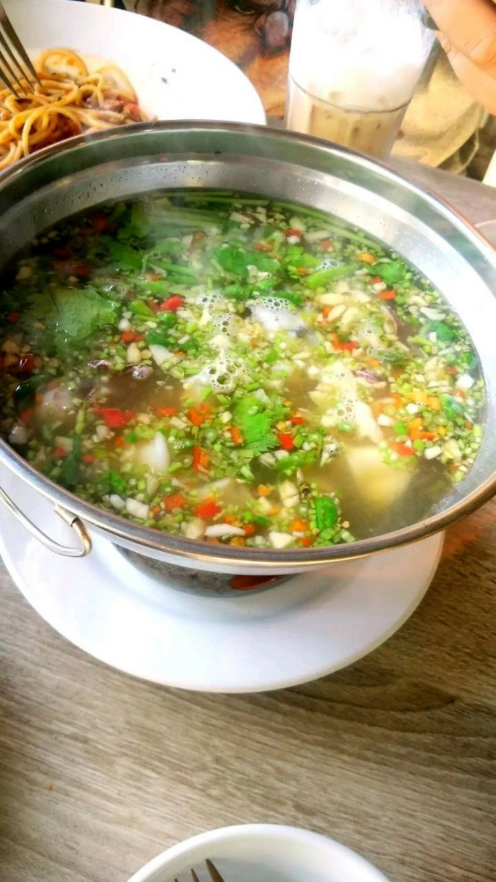 ...挺高的,点了特色的泰国小汤锅,里面有很多各种香料的调料在里面,吃上去味道很浓郁,特别适合泡饭吃路边小清新的一家店,我们也是随便进来的,然后在网上一查评价还挺高的,点了特色的泰国小汤锅,里面有很多各种香料的调料在里面,吃上去味道很浓郁,特别适合泡饭吃。