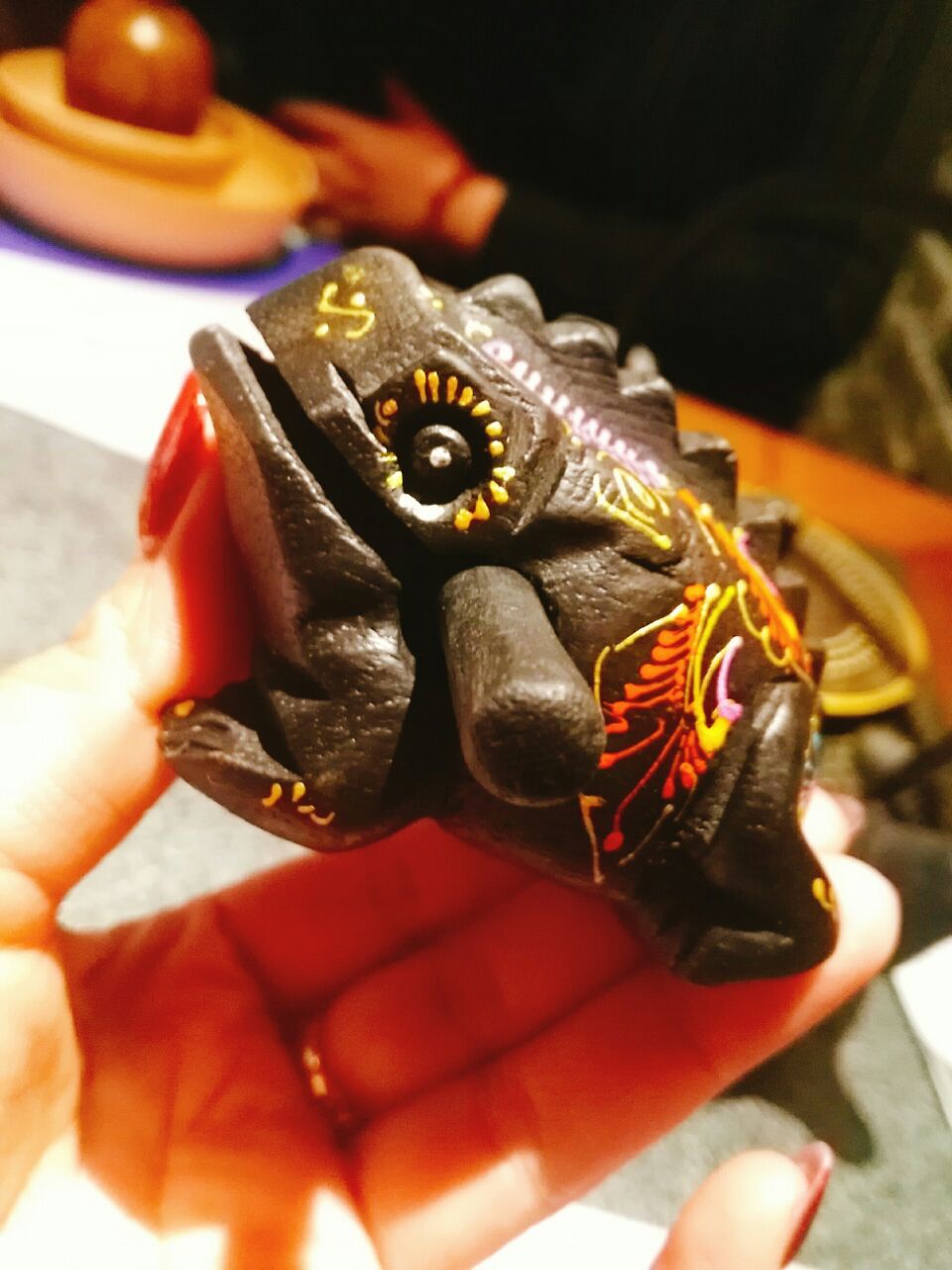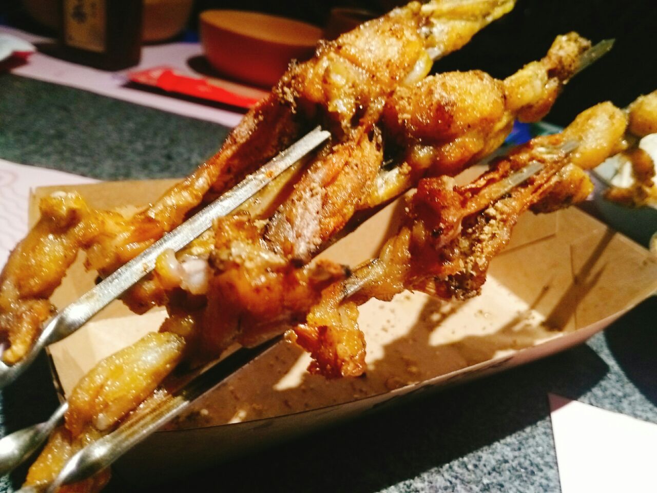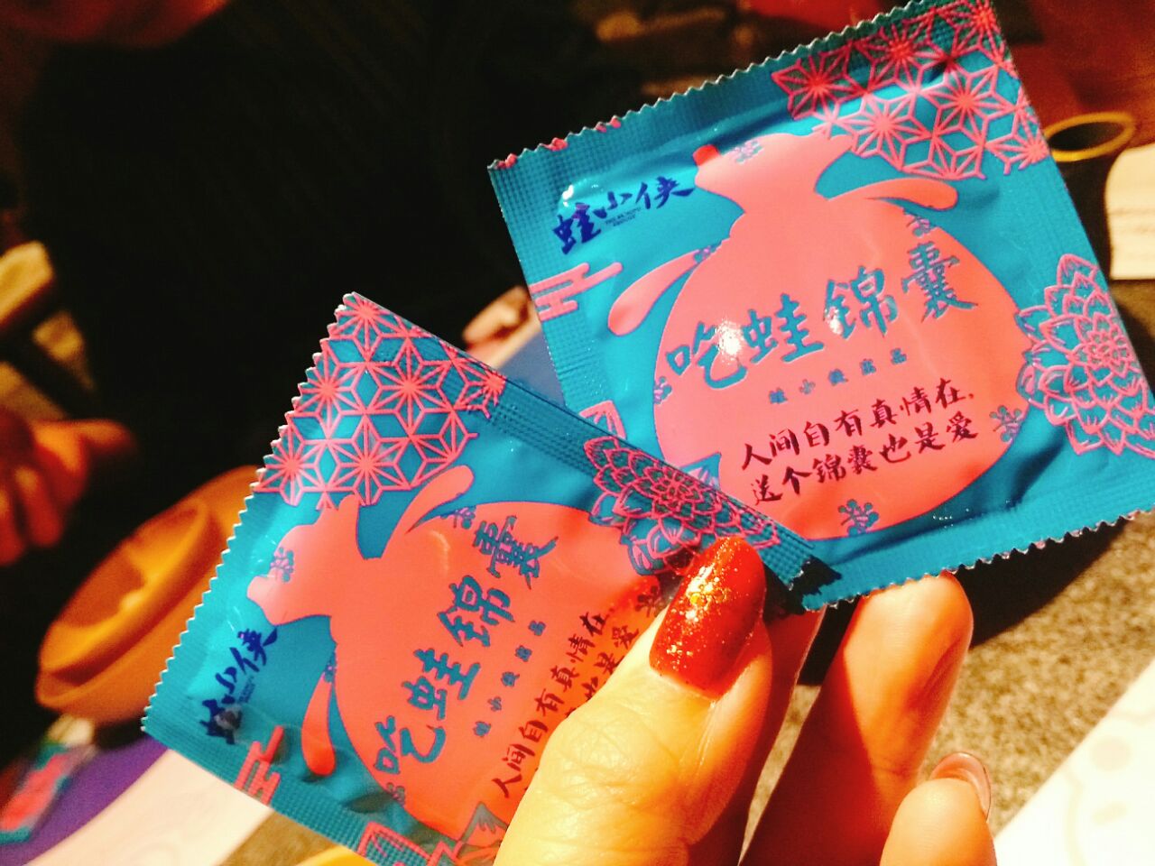 大融城四楼~门口有只戴斗笠滴小蛤蟆~每次都排队人气呱呱滴~六点半到的拍了四十分钟终于得以进去~空间不大 桌与桌之间挨得很近~朋友不太能吃辣点了一个青椒紫苏口味的 量还行 蛙是小块的先过油的 配菜里面的紫苏叶味道很浓厚 上来就可以吃 味道真的很不错~吃的差不多就可以+配菜了~配菜六元一份 有点小贵 数量不多很袖珍~黑凤爪味道不错但是量太少 看起来总共能有两只爪剁吧剁吧 底下一层还全铺着黄瓜打底~杨梅 不错 凉凉的 也是紫苏搭配 清口解腻~那个耙耙就是没有馅的汤圆 有点噎人~烤牛蛙不错 第一次吃 挺香~可笑可乐 古法熬制的酸梅汤 凉凉的喝一口很舒服~饭间不时有服务小哥过来帮忙翻锅底 加汤 很是不错~等有时间下次去再挑战一下麻辣口味的小蛙~哈哈哈~甚是刺激啊~值得期待