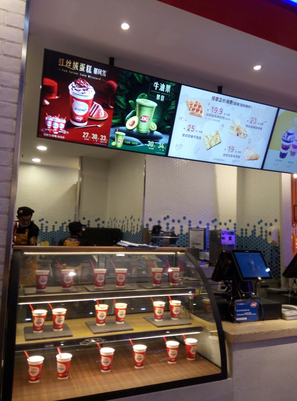 D Q 简易快餐 方便快捷暖心 逛街停留看景 细雨美女悦目 五角场万达广场,DQ在广场临街。店里人很少,很静适。 靠街而坐,喝喝茶,闲暇淡然。 看美女款款而行,点点雨滴隔窗无声。 蜂蜜柚子茶,很甜,微苦,杯底一层丝丝柚子,不是勾兑的。 金枪鱼蛋香佛卡夏,有点小,只能当点心吃。味道一般,没有感觉鱼的味道,但还是很好吃。 雨中有景看情。亲情友情爱情,情景交融心情。