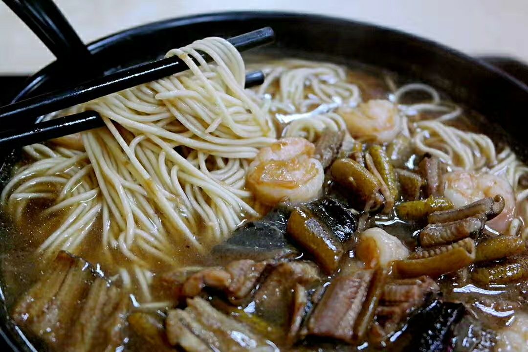网友2018-01-06虾爆鳝面选用新鲜的虾仁、鳝鱼进行爆炒,做成浇头常熟炒浇面馆在南京非常有名,面条有多种浇头可断选择,其中虾爆鳝面(28元)最受欢迎。虾爆鳝面选用新鲜的虾仁、鳝鱼进行爆炒,做成浇头。面条有红汤、白汤、清汤、干拌④种做法,汤头用猪骨、鸡骨、鱼骨、鳝骨进行熬煮,很是小清新。