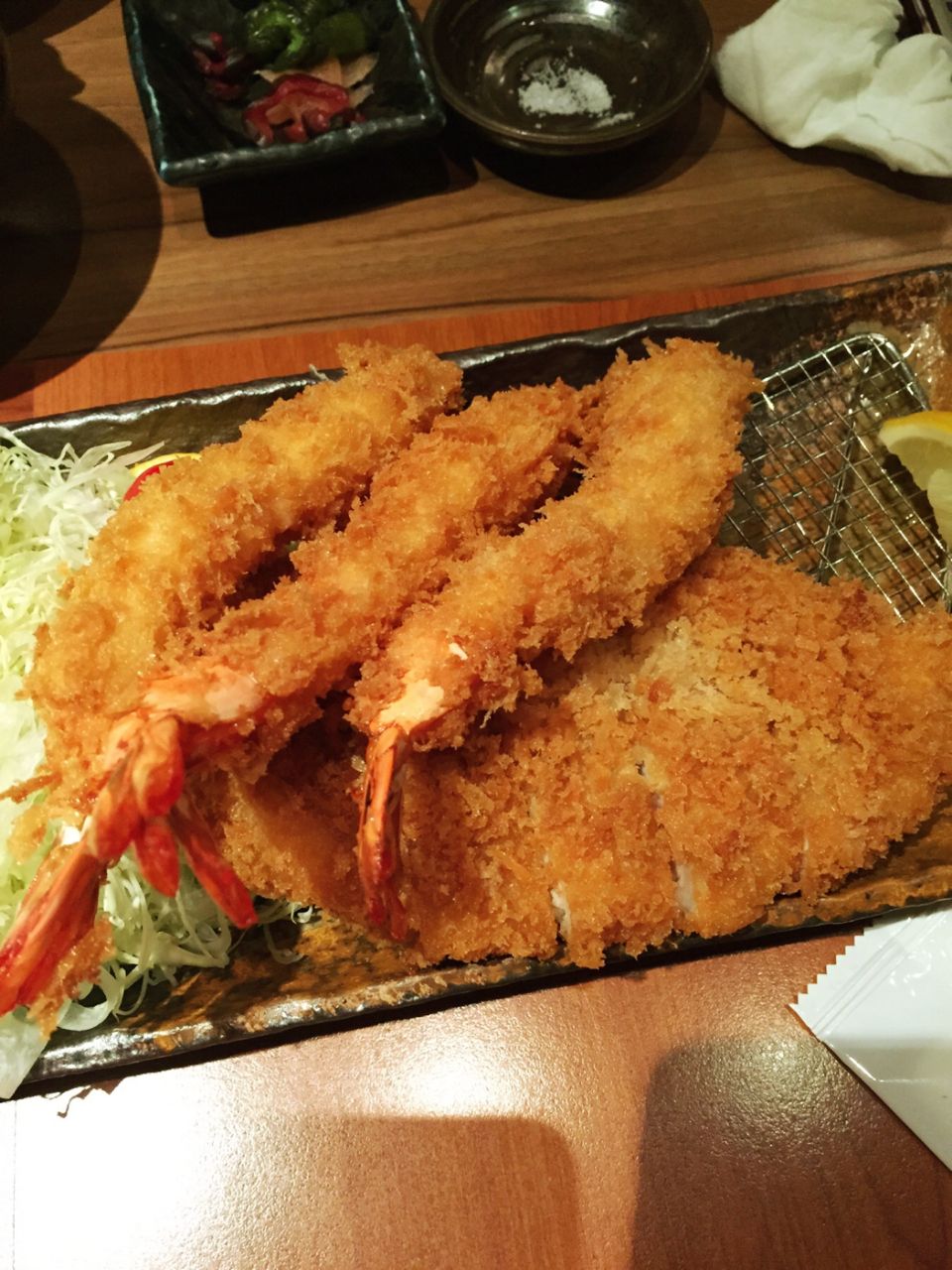 ...心上面,环境很好,吃的东西也不错,还挺推荐的,关键是性价比很高,我们两个人人均大概两百多块钱吧这家店在世贸中心上面,环境很好,吃的东西也不错,还挺推荐的,关键是性价比很高,我们两个人人均大概两百多块钱吧。点的天妇罗套餐和猪排定食套餐都做得很地道。