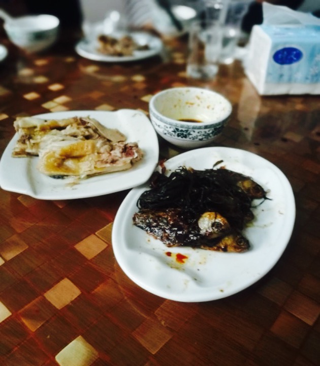 先去了东钱湖小普陀那边,那边超级无聊而且没什么好吃的,就一路开车到这边。第一眼其貌不扬,但老板做菜真的超美味。整体来说性价比很高。【白切鸡】超嫩超好吃。半只三个人吃正好呢。【河虾】选了油爆的烧法,很脆,但是原来虾的鲜味就被盖过了,其他烧法应该更鲜美。【木耳菜。】有些梗,嚼起来比较难过,但总体不错,也不是很油。【青鱼划水】超大一份被吓到哦。(详情见图五与手机的比对)鱼肉非常特别嫩。