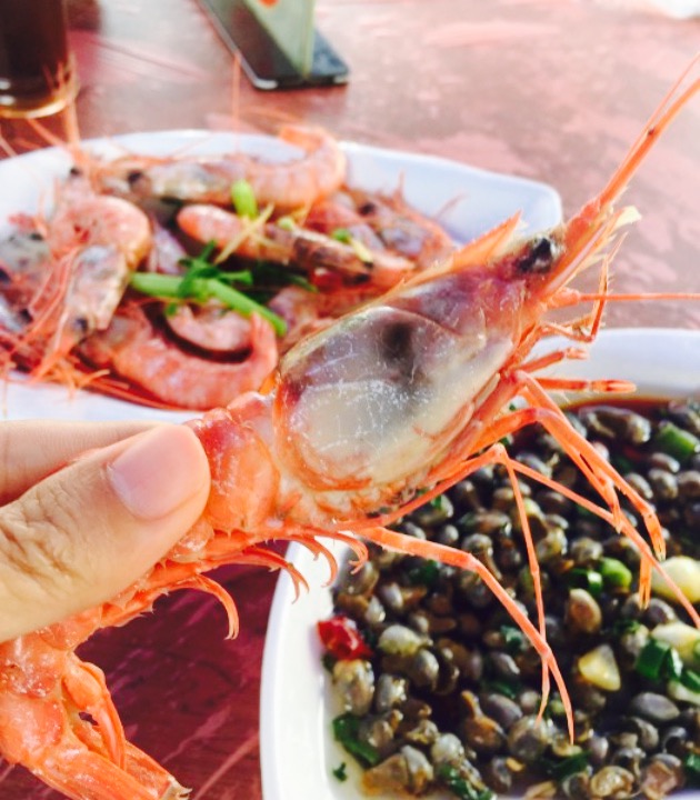 象山石浦第四顿。顿顿都必须吃海鲜。离酒店特别近的一家店,生意真好,稍微在选菜的时候纠结一下下,包房全部没有了。象山这里每一家餐厅都是只有包房哦,觉得是她们家的特点了吧。还要还有帐篷。白米虾 。用盐水的方法烹调,胖嘟嘟的白米虾,肉质饱满,在魔都吃到这么胖嘟嘟的白米虾还是很少的。鱼面 。加入了香油的口感更好了,如果鱼面能更多一点就好了。鲳鱼 。没有冰冻过的海鲜真的完全不一样,用红烧的做法如同蒸一般,肉质嫩滑。乌贼和花螺最后没有吃到可惜了。