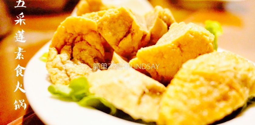 之前就有去过像一叶一世界这种专做仿真素食的地方吃火锅,这次跟朋友寻觅到的这家清水荷花五彩莲火锅,位置稍微偏僻了点,但店面还是挺宽敞大气的,而且名字听起来就这么的清心雅致,原来他家推崇健康养生,更是传承了一种道家主张清净无为的思想。一走进店里,前台服务生就立刻热情相迎,笑容温柔恬静,让人感觉很是安逸。这里最有特点的当属申请了专利的五色养生锅底,颜色分别为黑,红,绿,黄,白,各有各的功效,而且对应着金,木,水,火,土五行,纠结于不知道该点什么锅底的时候还可以通过抽签的方式来决定,大大满足了选择综合症患者的需求。我要的白锅里加入了百合,红枣,玉米,当归,白果等食材与中药材一起熬制,补气又养颜,女性吃了非常好,而且锅底汤料醇厚,喝起来鲜香入味。油碟是自助调味的,菜品当然都是素食咯,只是以面筋,魔芋,香菇,豆制品等做出来的水饺,酥肉,午餐肉等,的确可以以假乱真了。菜品码得很整齐,份量也相当足,我们三个人点了十一道菜都足以吃撑。