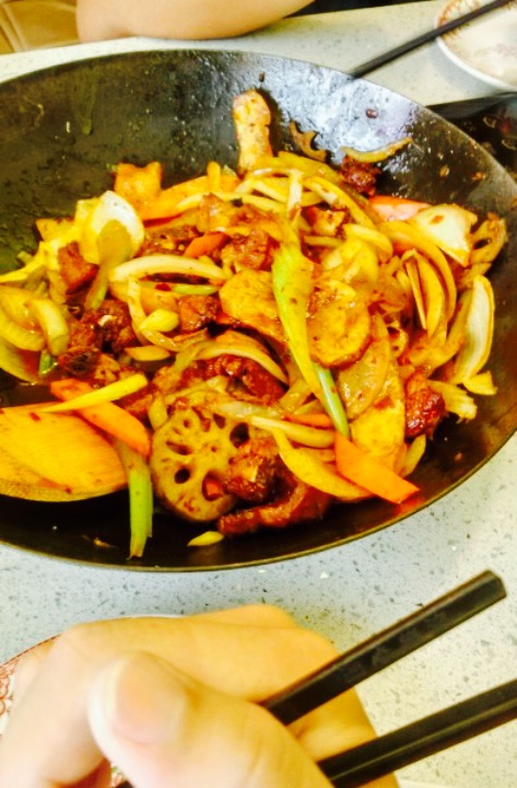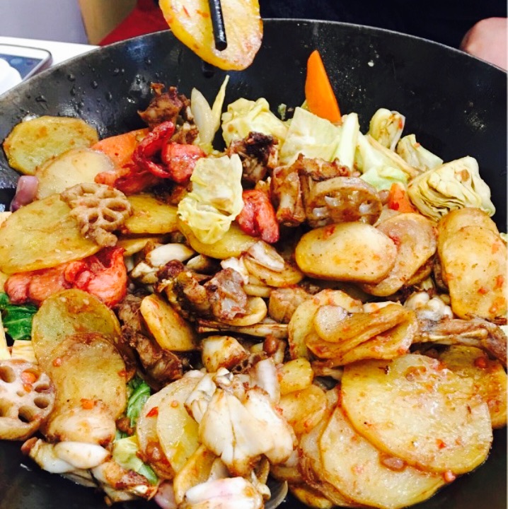 又到了SM广场的这家叶子干锅,主要真的是物美价廉啊,喜欢鸡柳干锅,很香呢,一般我会选择不辣的,然后就只有一点微微辣,比较能接受。又点了好多菜肴,吃完鸡柳干锅,服务生会帮你用酱炒好在锅里,只要负责吃就行了,服务还是不错的,特地帮我们拿到别的空桌子上去炒的,怕溅在我们身上。就是这里的店面不大,一共也没几张桌子,人一多,就很挤了,而且空调不是特别凉,一吃这个热锅,就汗都出来了,之后就不要保温了,真的是太烫了,改天我去别的叶子家吃吃看,真是十分开心呢。