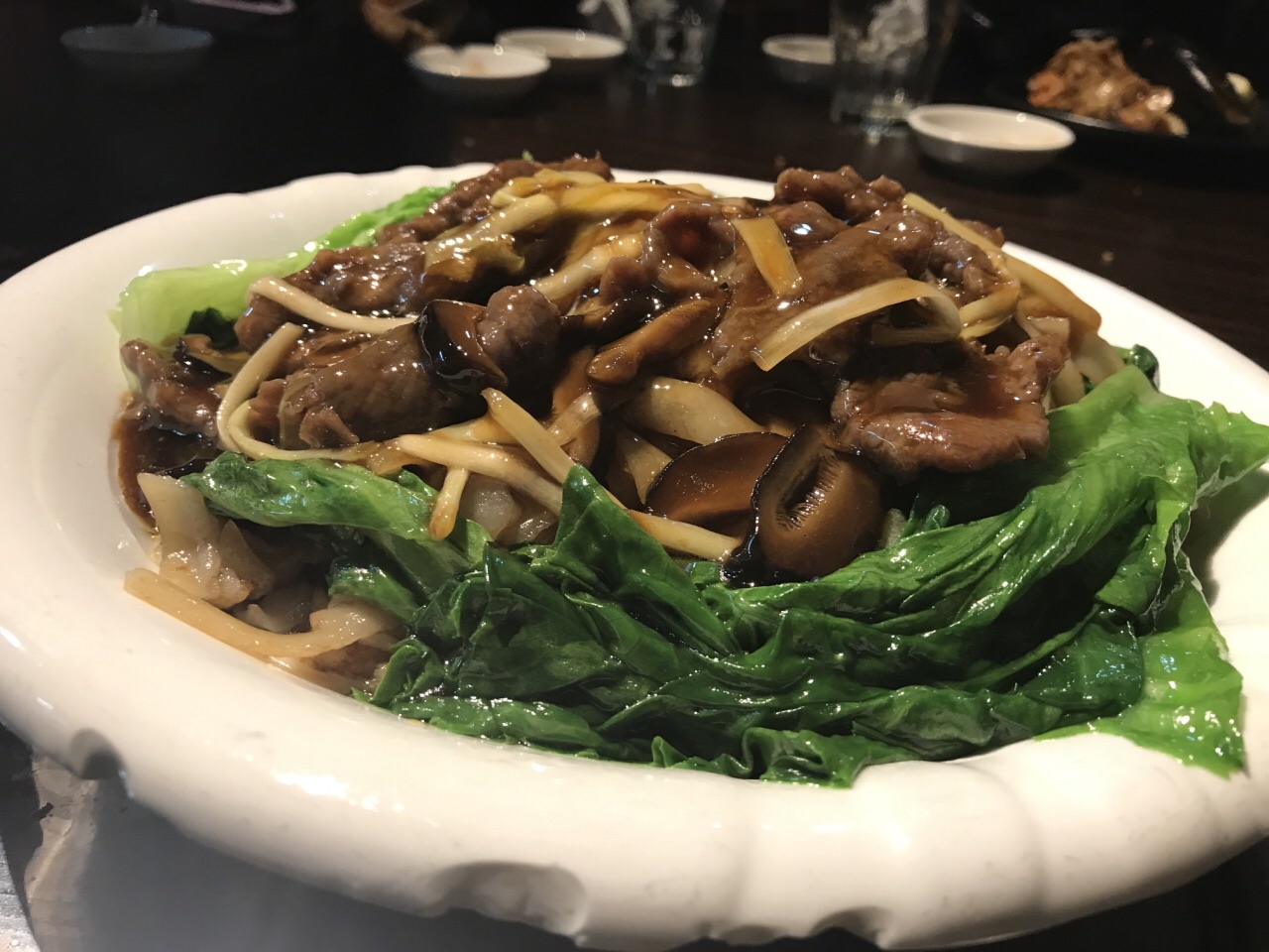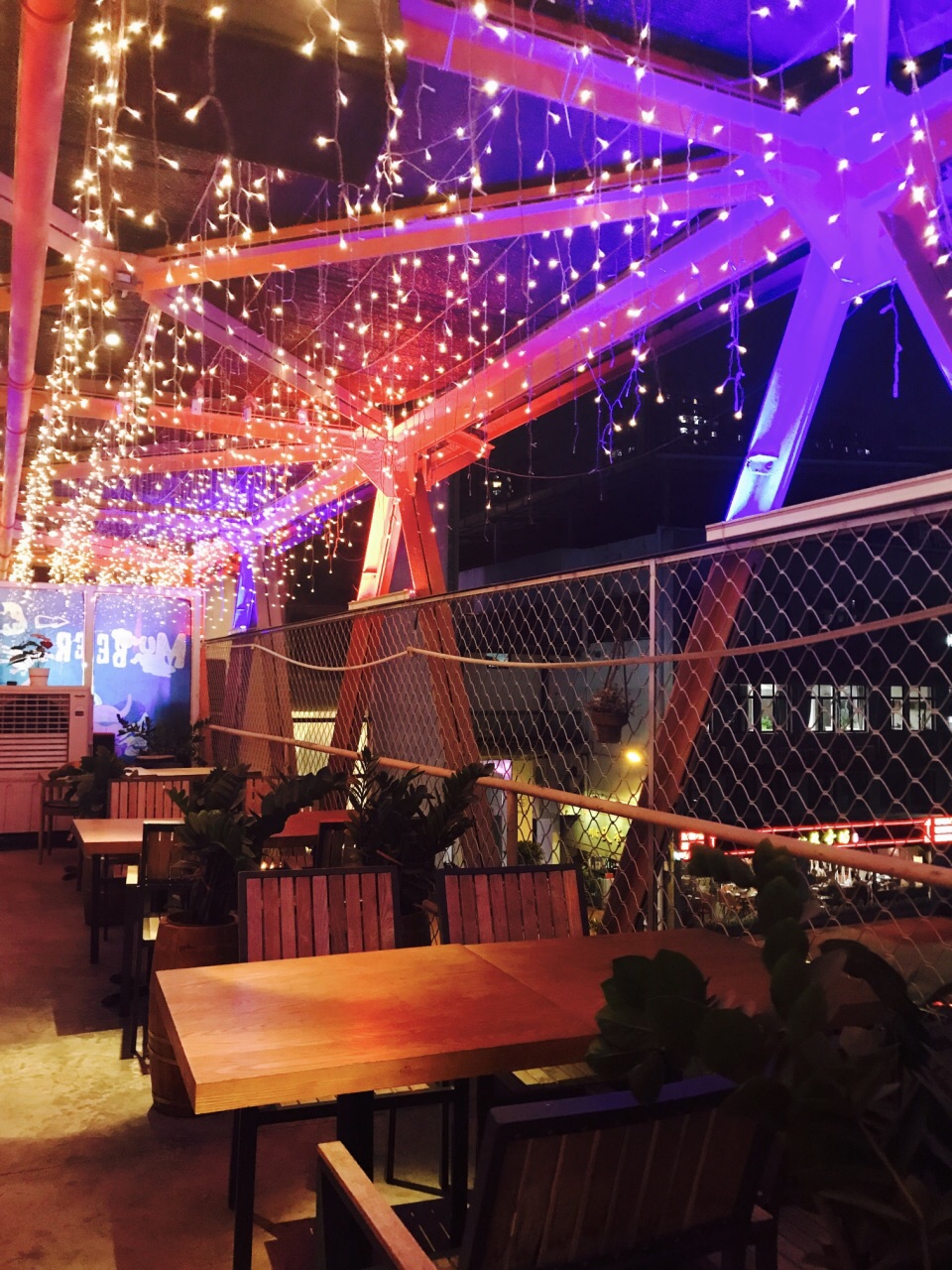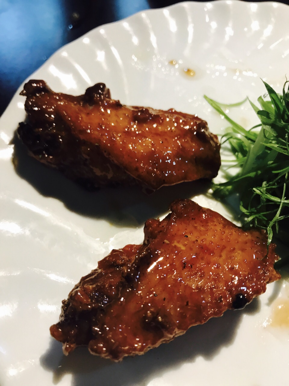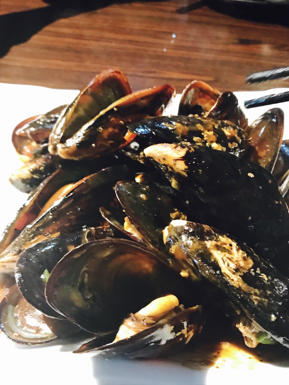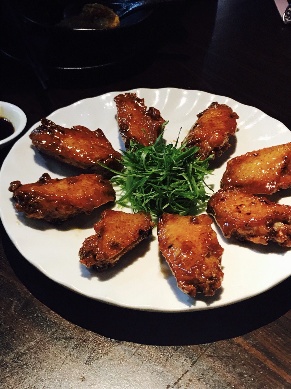 在金逸电影院旁边,有一个大的LED灯招牌,很容易找,上螺旋楼梯二楼就是了。餐厅地方不算很大,有透明玻璃厨房可以看到师傅切鱼片。 #枫糖芥末鸡中翅#一例8只,只只都油光发亮,让人恨不得马上就吃到,第一口就感到甜甜的,第二口才吃出有一点点芥末的味道。 #黑椒牛油炒青口#黑椒味并不是很重,没有抢走青口的鲜味,味道不错,很快被大家瓜分了,如果青口肉再大一点那就更好。 #湿炒牛河#一般在外面吃干炒的吃多了,偶尔换换口味,这碟份量挺多,牛肉够滑。 门口外面还有一个露天的长廊,布满灯,很漂亮,风景不错。