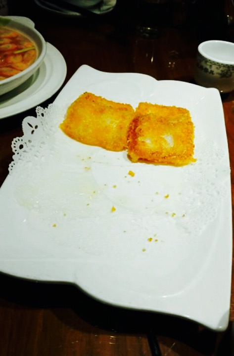 哇哈哈哈,又去拔草了,好开心,这次是四个伙伴一起去的,超级喜欢的。依然点的是凤凰豆腐,还是那个味。蒜泥虾,刚上来的时候有些冷,让他们有回炉了一下。蒜香味好浓。鱼头汤,好鲜,里面估计放了胡椒粉,一大盆全部消灭。也很合口味。雪花排条,有密集恐惧,所以马上把它吃光了,还可以。椒盐秋葵,觉得一般,没外面的鲜美。四个人才吃了200多,超级实惠。