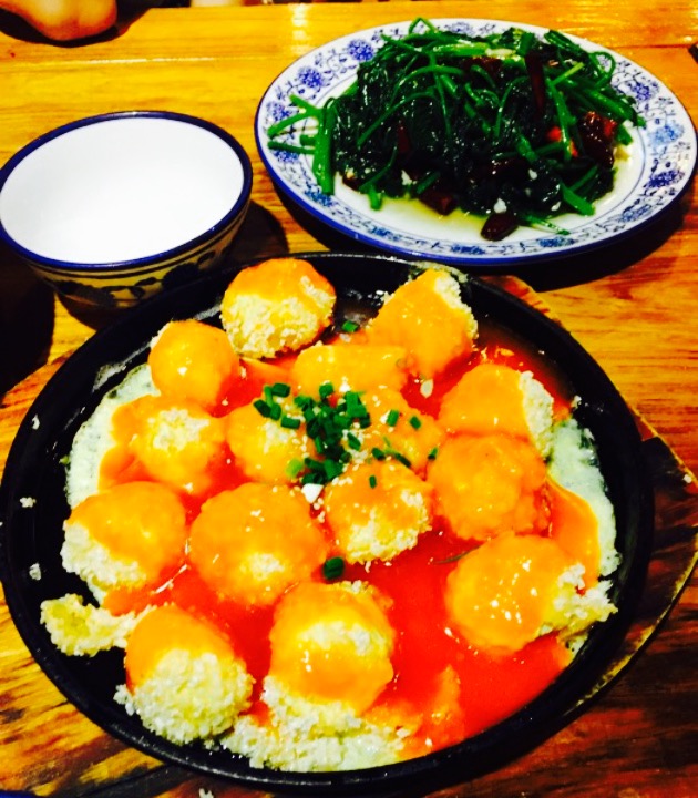 非常推荐招牌铁锅兔,量足,里边的干豇豆好鲜美,打底的豆花融入了兔肉和干豇豆的鲜味,根本停不下来的样子。番茄滑肉汤锅,肉肉滑滑滴,配上浓浓的汤汁,再烫上几个小菜,暖心暖胃啊。整个店堂的装潢风格充满了民族风,使得用餐的心情也有随之穿越的样子。