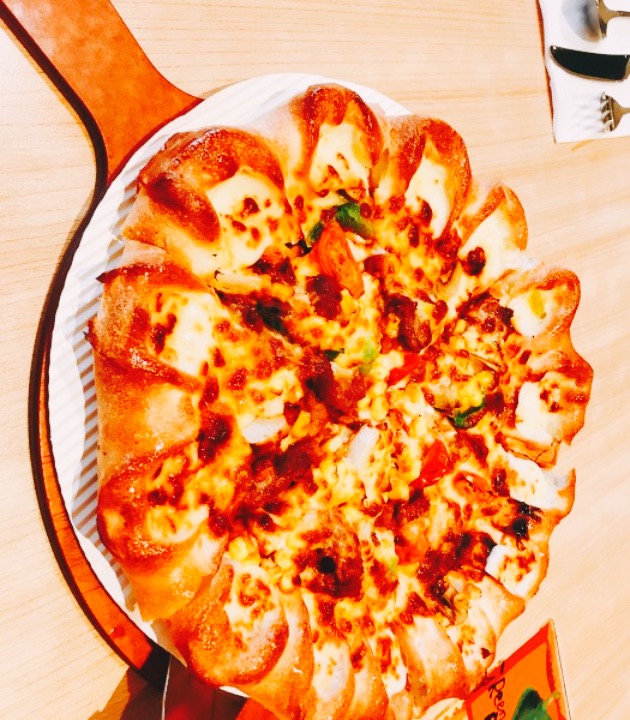 学校附近的必胜客,聚餐什么的,蛮合适的。最近必胜客搞活动,买饮料送披萨,两个人两杯饮品,加一个小盘披萨。推荐喝洛神花茶,在必胜客一直点这个饮料,喝不腻,很开心。酸中带甜。披萨是海鲜至尊吧,喜欢她们家的大虾,爽口。又点了小吃拼盘。鸡翅有点辣,其余都挺好的。