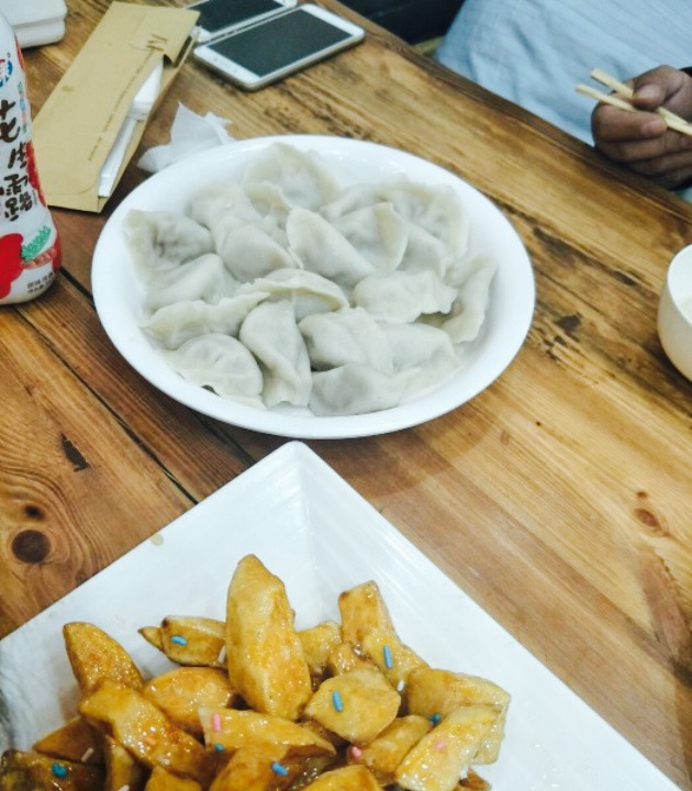 红旗街西三胡同与德昌路交汇,马路两边上都是饭馆,人头攒动的人群显示着红旗街的繁华。门口店面不大,但很有特色,古香古色的,一进门暖和极了,太好了,我就喜欢暖和。老板娘人很热心,点了店里两份比较有特点的饺子,宝贝要吃拔丝红薯,我想吃水煮鱼,因此就都点了。太惊奇,第一个上来的竟然是拔丝芋头,我看到饺子是现包现煮的,两个大姐手很快,分分钟搞定,现包的饺子就是入味,最后是我水煮鱼,我点的是半分,结果上来一大碗,老板娘说都这么大,我的天哪,必须打call,特别好,性价比好高,菜码大,关键是味道好,下次还要去光临,棒棒哒。