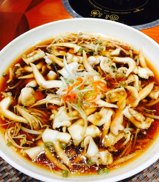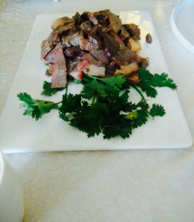 到锦州在酒店入住后直奔秦三驴饱口福,门口停车场很大,环境装潢不错,订的包间。天上龙肉 。地上驴肉。酱驴肉,驴皮冻,驴肉蒸饺,红烧大黄鱼,豆皮,都特别棒,对我来说,比葫芦岛的海鲜更鲜美。拔丝三样是我们这些四五十岁的中年人很久没有吃到的拔丝菜了,一扫光。东北人最擅长做馅儿,韭菜盒子驴肉蒸饺特别受欢迎,韭菜盒子里还有非常新鲜的整虾仁。唯一遗憾的是鲜炸玉米汁儿里加了糖,不太习惯。菜量特别大,六个大人一个小娃,八个菜一汤两主食,撑死也没能吃完,浪费啊。