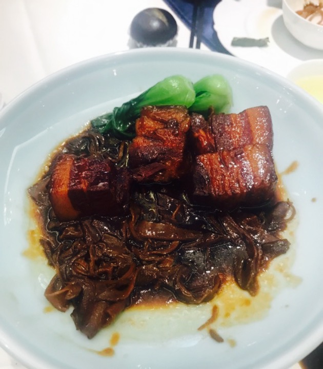今天去吃哒,是外公外婆爸爸妈妈庆祝我的19岁生日。然后这家店的环境很好,很雍容华贵,有民国时期与中世纪结合的样子。图一是葱油拌面,有些淡,可是服务员姐姐很好客的给我们加了盐,这个姐姐叫元元,人超好超NICE的。图二是什锦砂锅,里面有肉皮,肉圆,蛋饺还有咸肉,也是偏淡,不过一尝就喜欢味精放的很少,肉圆吃起来也是自己做的哦,十分的Q弹。图三是我啦,让大家看看背后的环境。图四是瑶柱炒莴笋,瑶柱的量超乎想象的多,肉质也很细嫩。图五的鸭脯肉特别的美味,就是有一丢丢的老。图六是蔬菜色拉,不像外面加了超多的色拉酱那样的黏密,加了米醋,特别的鲜美入味。图七的环境是大堂,确实真的非常气派。图八就是我们上海人最爱的红烧肉了,的确做出了红烧肉的精华,皮一捡就破了,然后价位也公道,才68有8块左右,很合算。图九是鸭肝菌面筋煲也好好吃的。除了这些之外还点了黄鱼春卷,白菜鱼丸,糖藕,什锦菌菇,餐前还送了一个人一位的木瓜,很甜。