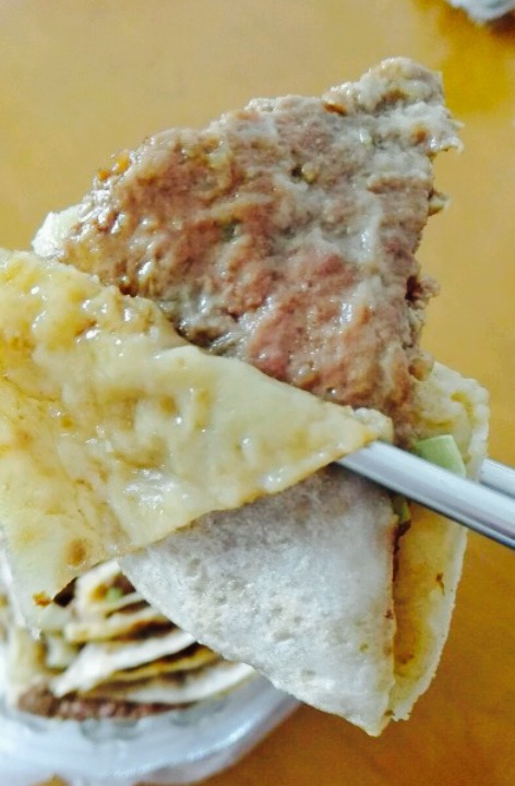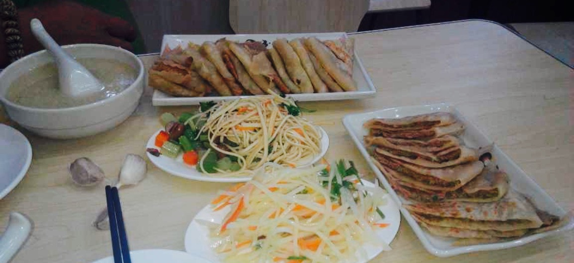 有点像油饼裹着肉饼,这也算中式的汉堡。都说牛肉的好,我本人觉得还是可以的。三鲜的是猪肉和鸡蛋还有虾仁,好非常的结合,木有菜啊,因为叫肉饼所以坚决不用菜吗。味道确实还不错,感觉比牛肉的鲜美。服务业非常好,值得再去。