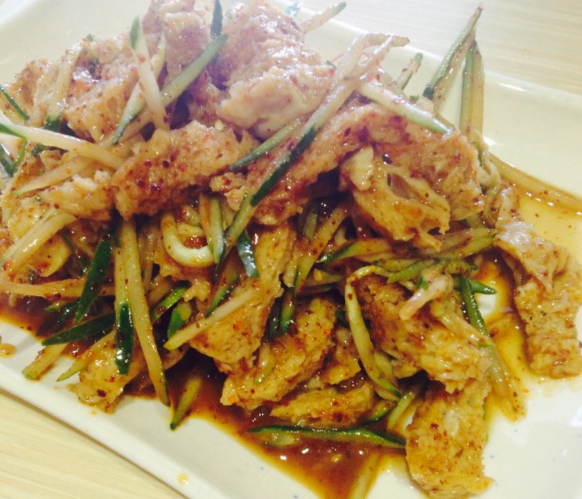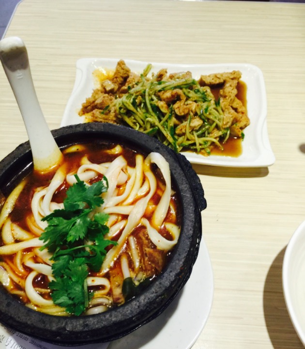 首先店里环境还不错,分两层楼,一楼座位不是很多,略显的有些挤。点了许多人推介的拌面筋,味道的确很不错,麻将味道很浓,酸甜口味的,可能女孩子比较喜爱,还点了两掺的土豆粉,土豆分量很足,味道也不错,料的品种不少,吃起来很舒服,特别要提一下,他家的辣椒油真的很香哦。并且不是很辣,超赞。