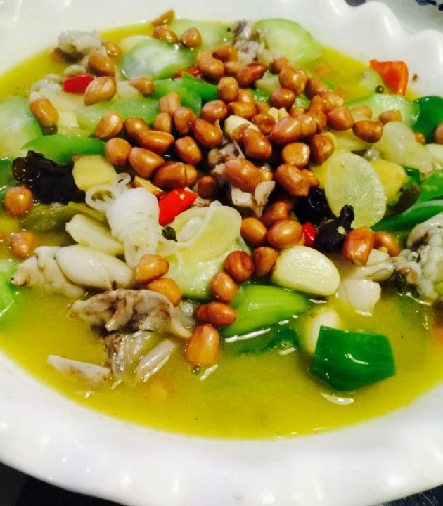 (情暖初夏)店铺在奥林花园对面,蠡溪路,靠近路口的位置,饭店虽小,但是生意确不错,服务也很好,点了几个菜吧,雪花排条,排条炸的很嫩很香,面粉不多,肉都是瘦肉吧,一份份量也挺多的,关键是价格便宜吧,一般来说的话都要28左右的,这里才22米,干锅牛蛙也挺好的,配菜很多,牛蛙肉质也鲜嫩,最重点的是干锅的味道,鲜,香,辣,然后带了一点麻,吃起来有些个豆豉的酱,标价比较中等,才50米,还点了个毛血旺,49米,稍稍的辣了点了,菜品挺好的,整个吃完觉得麻麻的,符合川菜的特色要了点米饭,米饭也不错,总的来说,这边的菜觉得比较实惠,品种口味稍稍的单调了些个,马上到了吃龙虾的时节了,老板娘也推出了龙虾。下次来尝试。