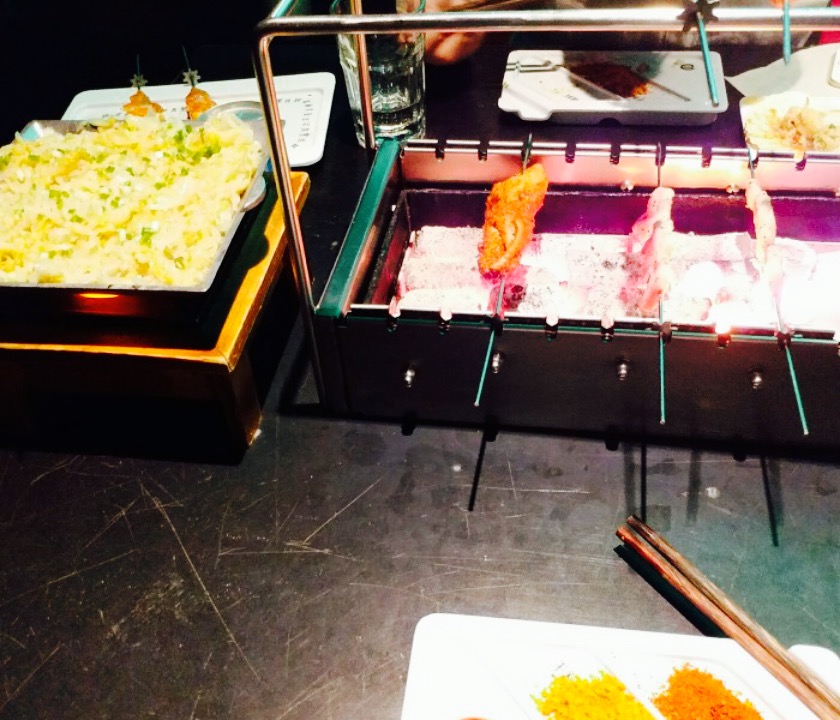 被同事推荐去的,果然不负所望。值得推荐的一家店^ω^。首先说说[环境],这家在台湾街边上,店面很大,很好找,门口停车便利。但是这条街全是吃饭的地方,导致排队停车有点慢。店内环境很不错,简介大方,以黑色为主调。其次说谁[口感],招牌的应该就是这个呼伦贝尔羊肉串了。的确很不错。撒上特制的佐料,口感细嫩,良心羊肉串。其次骨肉相连,烤五花肉都十分鲜美。方便面也是绝了。我同事吃了两碗。比炒饭好吃。插播一句,碳烤的炉子很好,所有烟都是往下吸的,不会往上冒烟,设计的非常好。最后说[服务],服务挺不错的。大家都穿着中国的衣服。挺逗的。服务生会帮你烤羊肉串。其余的都要靠自己的。不过她们路过的时候也会帮你把熟了的放上来。态度都很殷勤。唯一的不足就是,因为是lu串的地方,都很吵。扯着嗓子说话才能听见。需要安静的可以选包厢。没错。有包厢。