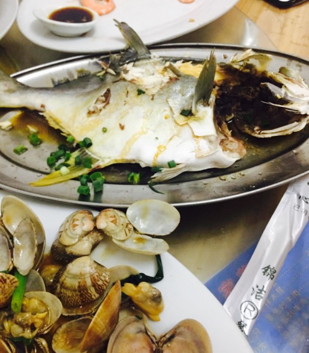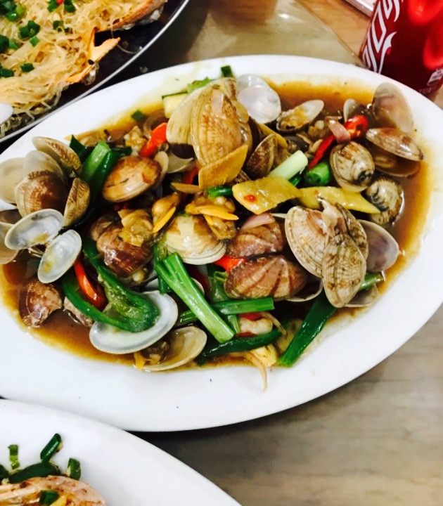 就与海鲜市场隔两条街,依旧是自己去群益市场买海鲜后,再拿到明记海鲜大排档去加工,加工费基本上每家都大同小异,每道菜15,25左右。窑鸡108一只有点贵,味道可以吃,可是没有惊艳到。商家的炒青菜,茄子煲,炒米粉都是很不错,茄子煲非常合口味。海鲜加工的味道不差,就是服务生太少,上菜速度有些慢。再去还会选择这家。海鲜市场买海鲜主要靠自己讲价,挑选。基本上是够份量的。