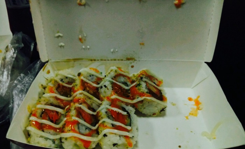 点过超多次,很爱吃章鱼小丸子,这家店也是学校附近吃过的自己最开心的一家,经常就是点一份丸子,加寿司,泡菜肥牛卷,刚好够外送费,可是后来好像泡菜肥牛卷没有了伤心。有的时候觉得一份不够吃,都一个人点很大份。送餐的话还算快,毕竟也挺近的,送过来的时候都是放在保温的箱子里,超亲切。丸子里面的章鱼肉还蛮大块的,而且非常喜欢海苔和木鱼花和沙拉然后就着章鱼小丸子一口吞,额,要命,好饿啊。寿司的话其实每次都是来凑钱的,这里不太推荐黑胶烤鸭卷,鸭肉很老。本人喜欢川香鸡柳卷。这家店的寿司米特别爽口。而且料很足,一个人可以吃饱饱。