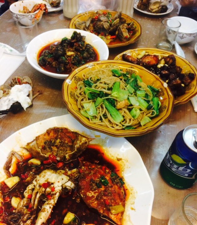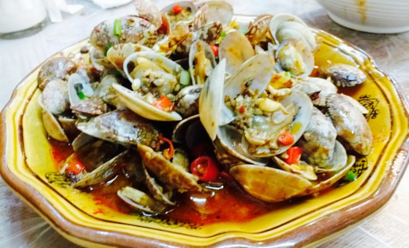 田螺超级大,一度以为是福寿螺,我爹辨认之后说是中华田园螺不晓得什么种类的鱼有土腥味,辣椒酱蒸的,鱼肉没什么味儿,陪着辣椒吃超辣,可口的是蒸鱼汤沾米粉。田螺超级大,一度以为是福寿螺,我爹辨认之后说是中华田园螺。团购很合算。