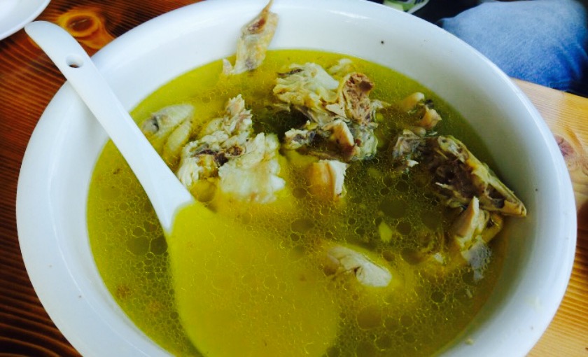 今天天气很好,开车来这家吃点农家菜,清新有料。门口看到这家店觉得不起眼,走进来才发现超级大,居然还有湖边的雅座,于是我们就挑了这些湖边的凉快位置坐下来,这边的菜很清新,我们点了白丝鱼,肉很嫩很肥很鲜,一会会就吃完了,盆子很大,一条鱼切一半做成了一盆,但是份量刚好。鸡汤也是绝赞的,很清淡,但又很清新,就是土鸡汤的原汁原味,一连喝了好几碗。值得一提的有螺丝,确实很入味,难怪大家推荐也好多,不咸肉很多。螃蟹已经长很大了,做出来的面拖蟹很鲜,壳再硬一点就可以直接吃螃蟹了。茭白是用酱一起烧的,很鲜美。这边环境非常好,湖里还有鸭子,小鱼,吹吹野风,吃吃饭,秋高气爽的日子特别适合这样的家庭聚会,以后周末还可以考虑再来吃吃喝喝玩玩,休息休息。