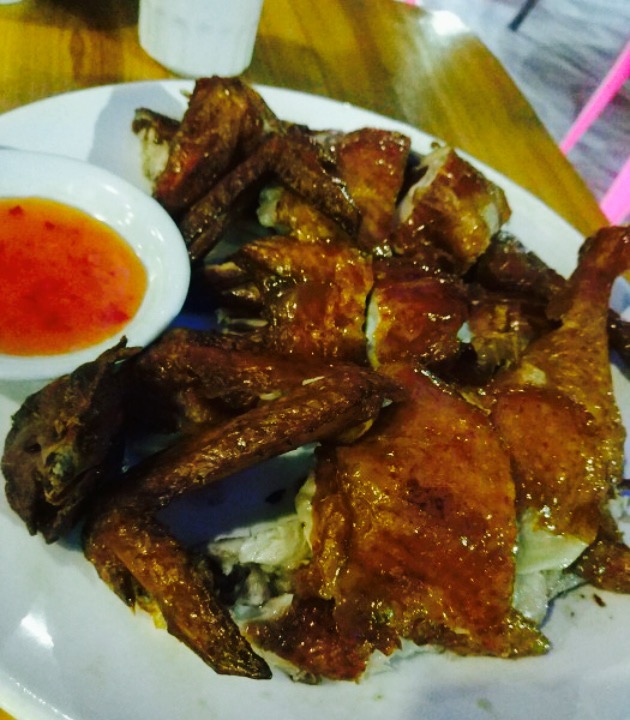 第一次光顾,朋友介绍酸菜鱼不错,就是地点好难找,在振兴路的后一排,我们从麦当劳旁边开始兜了几圈才找到,环境还不错,桌与桌之间间隔太小,空间太小而且只有一层门面。中午来到有好几桌客人,老板态度很好,烧鸡味道真心不错,鸡皮很脆,鸡肉都很鲜美,酸菜鱼酸菜味道超酸爽,辣度也合适广东人的囗味。第一次吃到炸云吞加了紫苏的,味道很特别。各种菜的份量也还适中,证明经过佛冈停下来吃饭是正确的。美中不足的是空调调到18度都还不凉。但是下次还是会来的,菜的出品还真不错。