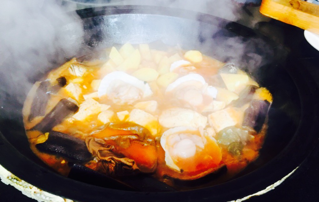 经朋友介绍来的这里尝试下。结果口味相当不错,价钱还算实惠的。重点就是性价比很高。在北戴河这种地方吃海鲜,单价仅比去自由市场略贵一点,的确太良心了。我们两个大人一个小孩子,要了2只活海蟹不到一斤,半斤多活虾,一条大黄花鱼,4个夏威夷扇贝,一斤八爪鱼,一份茄子土豆配菜,一份手抓饼,一瓶饮料,总共只花了190。味道也很不错,口感略咸,是这种海鲜炖锅的通病,微微一点辣味,娃娃也能接受。今后再去那边还要去,很赞。都是回头客,不预定貌似都没地方。街边小店,特别追求环境的可以绕过。百度地图导航能到,在国道边上,貌似在百度上还能搜到另一个同名的,在旅游区附近,问了老板娘,说不是一家的,他家没分店。