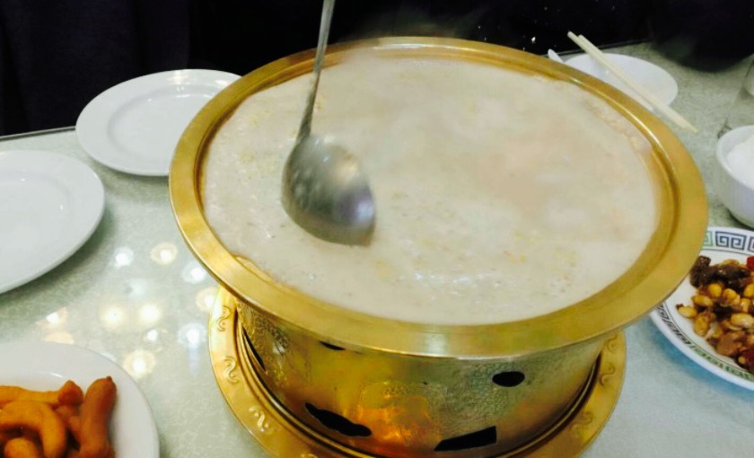 一进门第一眼看到的是敞开式的厨房 。卫生卫生。 。菜品和肉品都是现做现爆的 。这点也是最大的特点 。肉品应该都是科尔沁的肉 。完全都是一大块大一块的 。还分了各式各样的位置 。满分 。个人吃火锅还是开心在一个锅里的 。所以包房内的小锅不是很有感觉。 。并且服务员在开酒的时候 。掉了东西在我的锅里 。之后竟然拿勺子去捞。 。 。虽然最后换了一个锅 。只是还是不清爽的 。再有服务员比较忙的 。每次找都不见人 。只有上菜时比较积极吧。肉品口味很好 。应该是很清新的材料 。而且真材实料 。对了。 。 。 。吃清汤锅底就可以了 。辣味的就是在清汤的基础上增加了 。老干妈辣酱 。没错就是 。 。老干妈辣酱。总之是很适合 。带家里人 。真正吃点肉的酒家了。