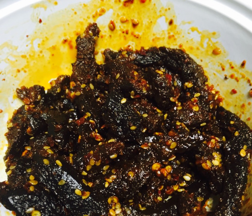 最爱吃他家的黑牛肉了,卤得很鲜美,很香,买了他给我们切好,放上调料办好,味道真美味,还有凉拌豆...