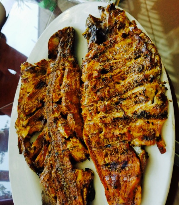 来平谷开会在这边就餐。院子很大,菜口味不错。烤虹鳟鱼很好吃。虹鳟鱼一鱼两吃,一半烤了一半切生鱼片,没敢吃生的,同行的人说味道鲜美,比三文鱼美味。还上了一个鲟鱼,不太敢吃。炸小河虾很入味,土鸡炖蘑菇里的山蘑菇美味。炸花椒芽口味一般。野菜贴饼子很可口。天井里还种着向日葵,门口有棵梨树,结的果子很诱人。