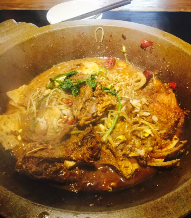 秒杀的特价单17,6元两人餐。实在是超级的实惠,我们4个人都没吃了。之所以选择的是六顺店,是因为家近。店家很热情服务也很周全。因为我和朋友是在其它的饭店刚吃完过去的。打包的羊蝎子,然后让服务员拿个碗顺便帮加热一下,的确就帮我们做了没有拒绝。说实话我都感觉我们家很有些过分哦。并且我们去的时候刚刚好鱼刚熟。香味儿扑鼻。本来吃饱的我又禁不住又吃了一顿。店家还特别热情中放了咸菜,面条和鸡蛋。我们吃完了一锅帮我们下的面。并且还送了我们午餐代金券。要是有机会还是这么合适的话我想我们还会来。好吃不贵,很是实惠。