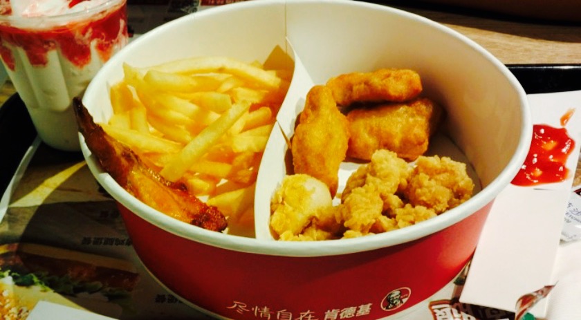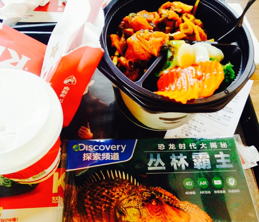 哈哈哈,捉猫兑了一个圣代就骑着小黄车赶紧去兑换掉了,可是一个圣代怎么够两个人吃呢,老公又自助下单了一杯可乐,一份薯条和一份鸡翅,可惜没有用银联刷,62折就这么白白流失了,可是还是依旧那个熟悉的味道,圣代很爽口,薯条很香,哈哈哈,鸡腿就更香了。