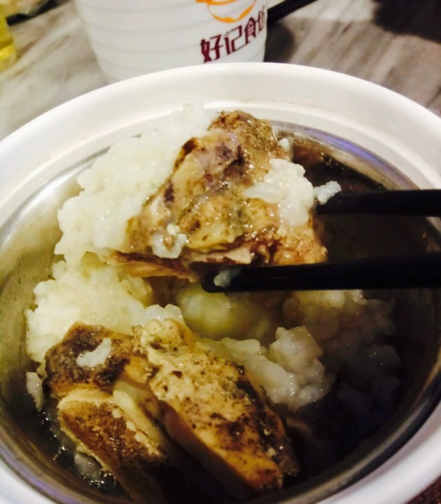 黄鳝煲仔饭料足饭够入味,泥焗鸡好嫩滑鸡味足,咸骨粥竟然是用盅装的,感觉很浓稠和平常吃的不一样