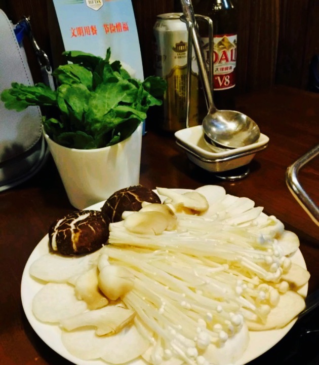 正经吃石斑鱼的云南火锅,环境特别云南风格。木桌椅,彩灯,绿植。上楼两侧还有各种云南丽江的照片。去的时间晚没遇到饭点,点了番茄鸳鸯锅。石斑鱼片,这个太赞了薄如纸啊,一共四盘一盘两片,涮一会就能吃了鲜嫩啊配上特色蘸料。鱼片刺身,据说是每条鱼身上就那一点能生吃,非常爽脆口感很好啊,虽然不像三文鱼肉吃的样子很滑嫩。但这个是爽脆的吃多了也不会腻口。丸类拼,蟹子丸,芝士丸,龙虾丸,这里口感最好的是龙虾丸,芝士丸有点莫名其妙,蟹子丸也没那么入味。竹荪放在番茄锅里特别入味,青笋也涮在番茄锅煮的烂烂的,虾滑手打得不错。鲜花饼还挺像的,像嘉华鲜花饼。捞饭很清淡,米饭泡在鱼汤里放点菠菜,就像烫饭一样。总体来说真是不错的鱼火锅店,不过味道比较清淡,也是我口重。值得推荐啊。