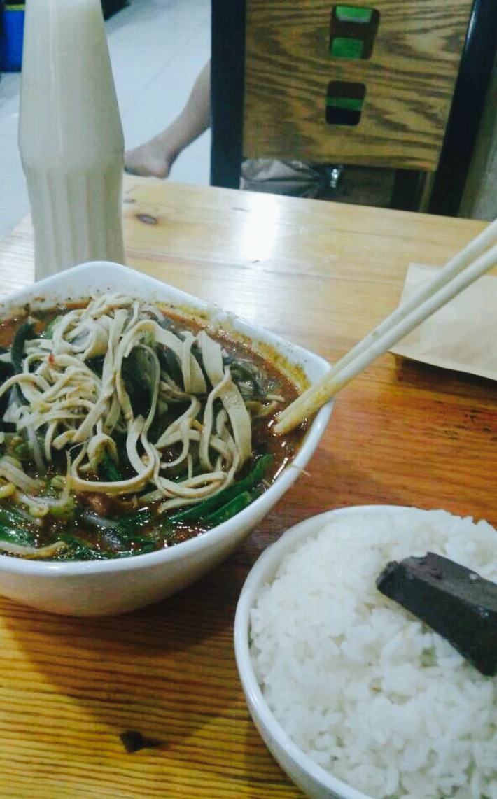 这里新店刚开业,布局的很温馨,很卫生,给人觉得很优良,很喜欢他家的热干面,我老公喜欢他家的麻辣烫,热干面虽然比别家贵个一块两块,不过味道比别家的都入味,并且还有肉沫,份量很足,喜欢吃热干面和麻辣烫的可以去尝尝,保证让你吃了还想吃。